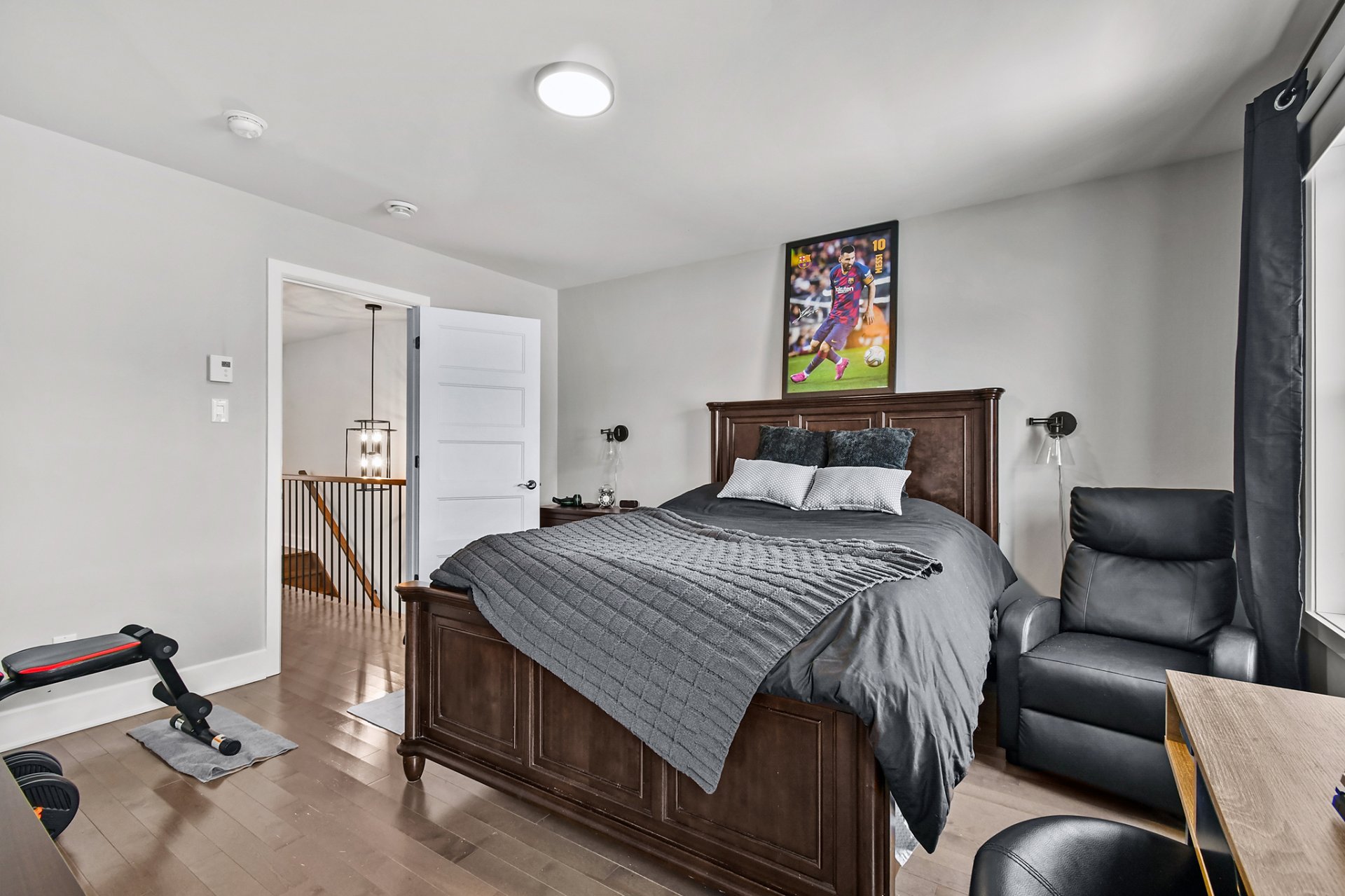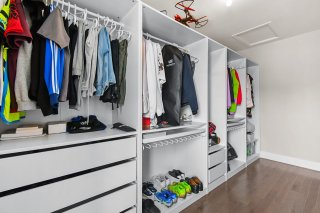 - Two upstairs bedrooms, each with its own walk-in closet
