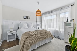 Situated in the Domaine Vert Nord district of Mirabel, this turnkey townhouse is located in a peaceful and safe neighborhood. It features an open-concept layout that allows for an abundance of natural light. The modern kitchen boasts ample workspace and quartz countertops. Upstairs, you will find a laundry room and two bedrooms, each with its own closet. The property also includes a garage. With its proximity to all amenities, the location is truly ideal. One visit is all it takes to be convinced!