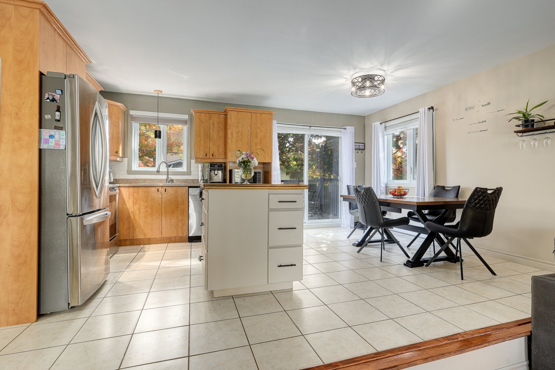 Inclus : Stores, fixtures, hotte de cuisine, balayeuse centrale et ses accessoires, ventilateurs et télécommandes, îlot de cuisine, bar du sous-sol et 3 bancs, auvent rétractable, cabanon, gazébo de la galerie, gazébo du Spa, Spa et couvercle et tout ce que le vendeur laissera sur place au moment de l'occupation de l'acheteur.