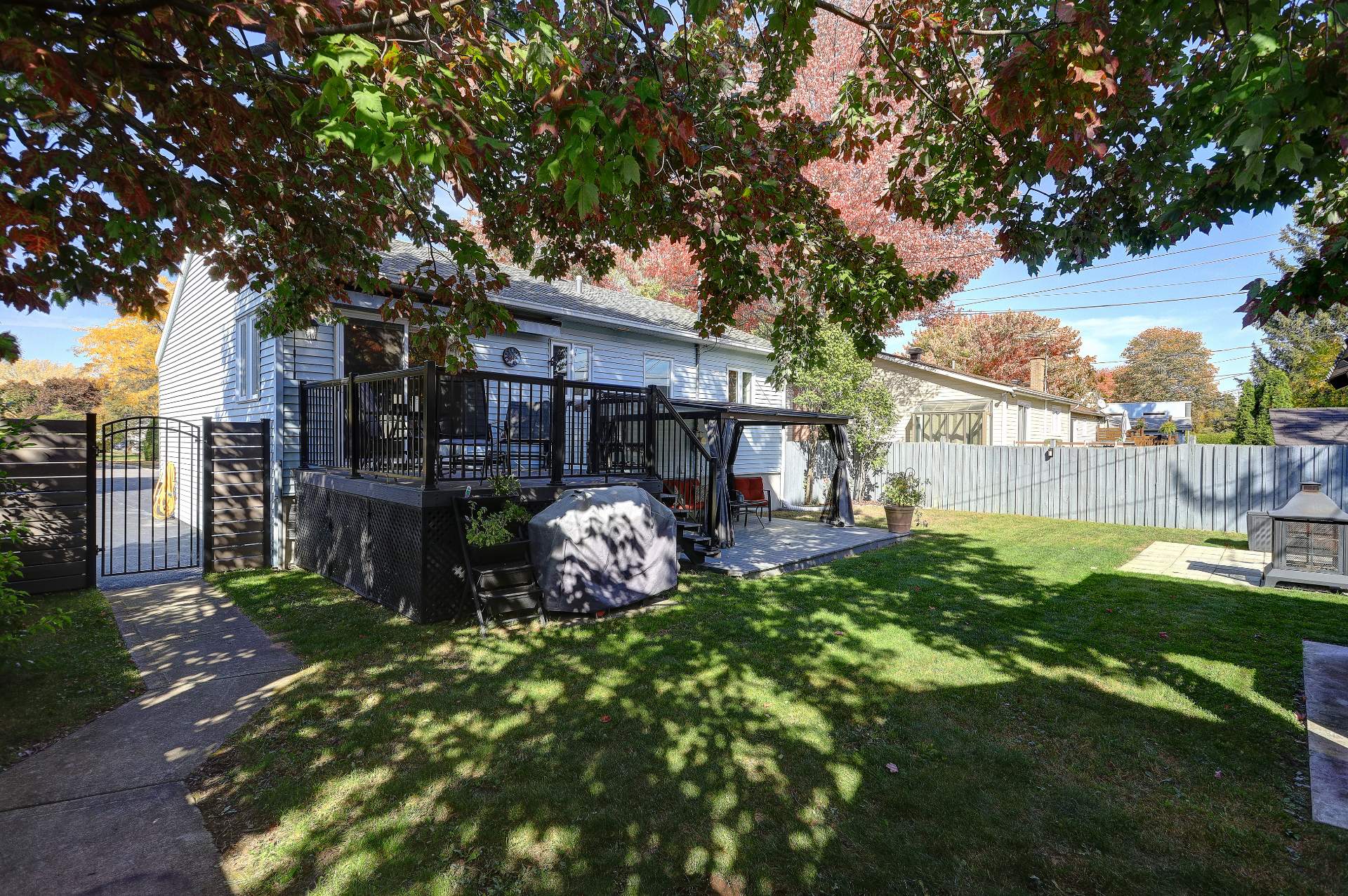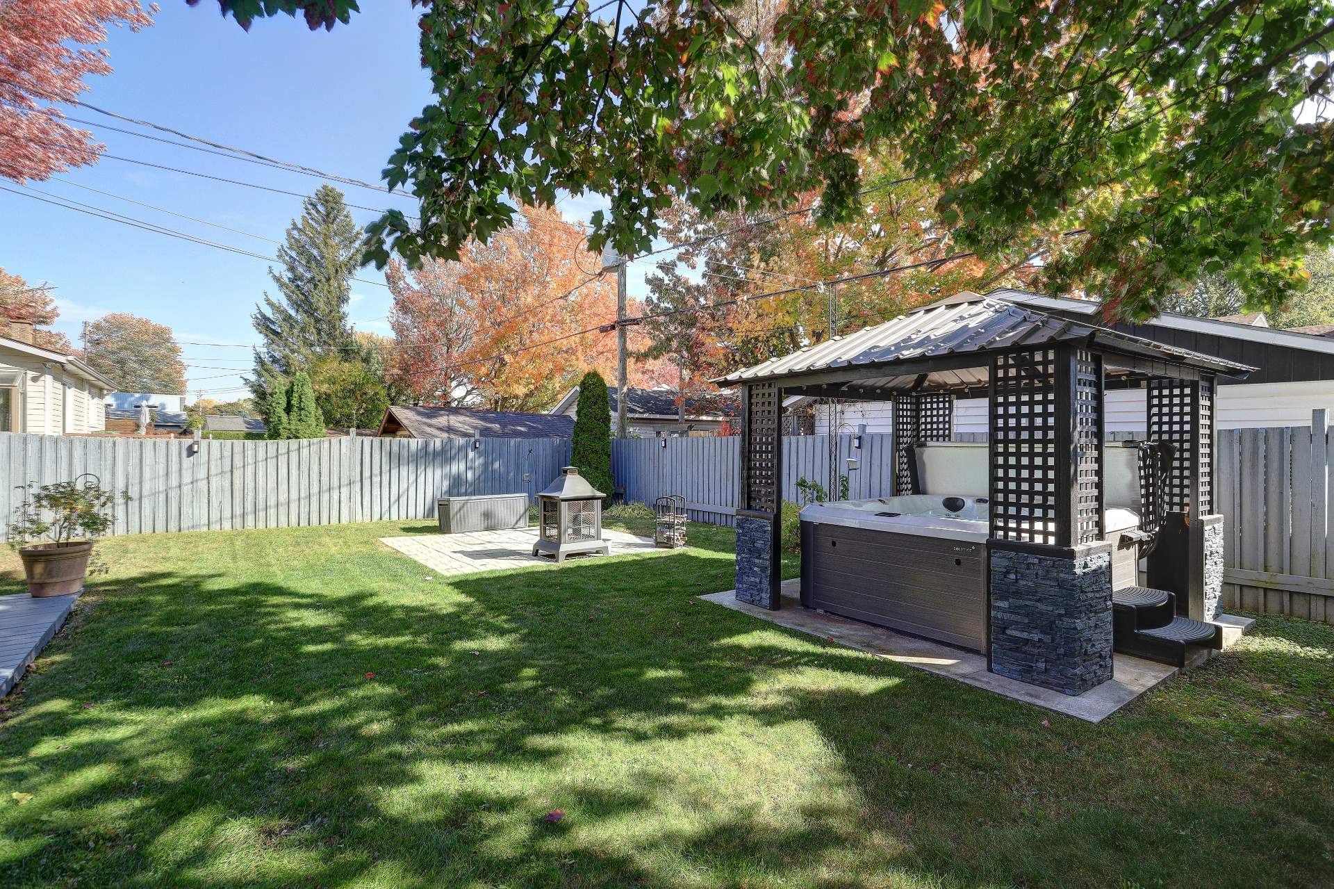 au coin feu. Le terrain de 6000 pi² est entièrement