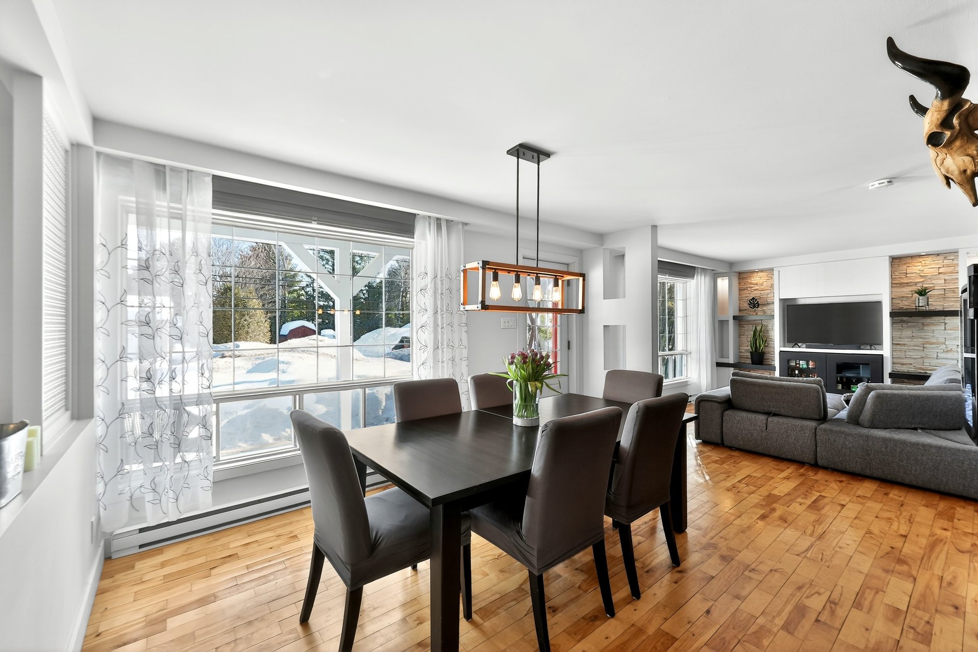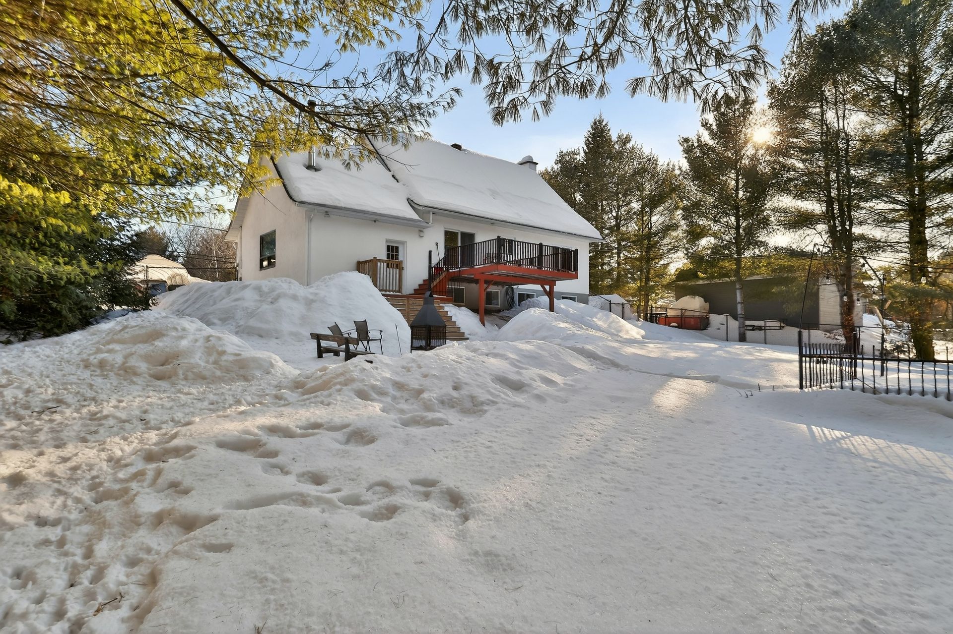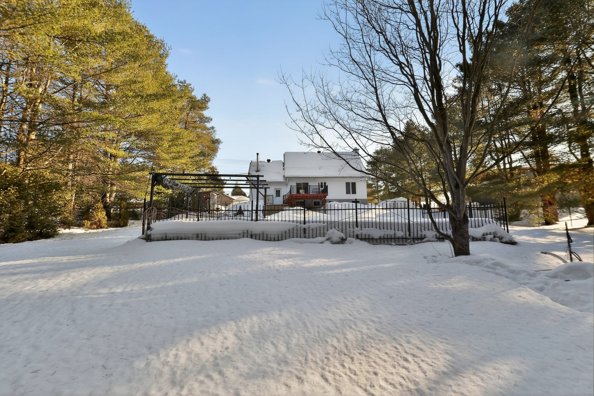 Inclus : Luminaires/stores/rideaux/foyer électrique salle à manger/réfrigérateur du sous-sol/thermopompe piscine et accessoires/tracteur à gazon/télévision sous-sol/armoire du garage/section avant de la clôture de piscine.