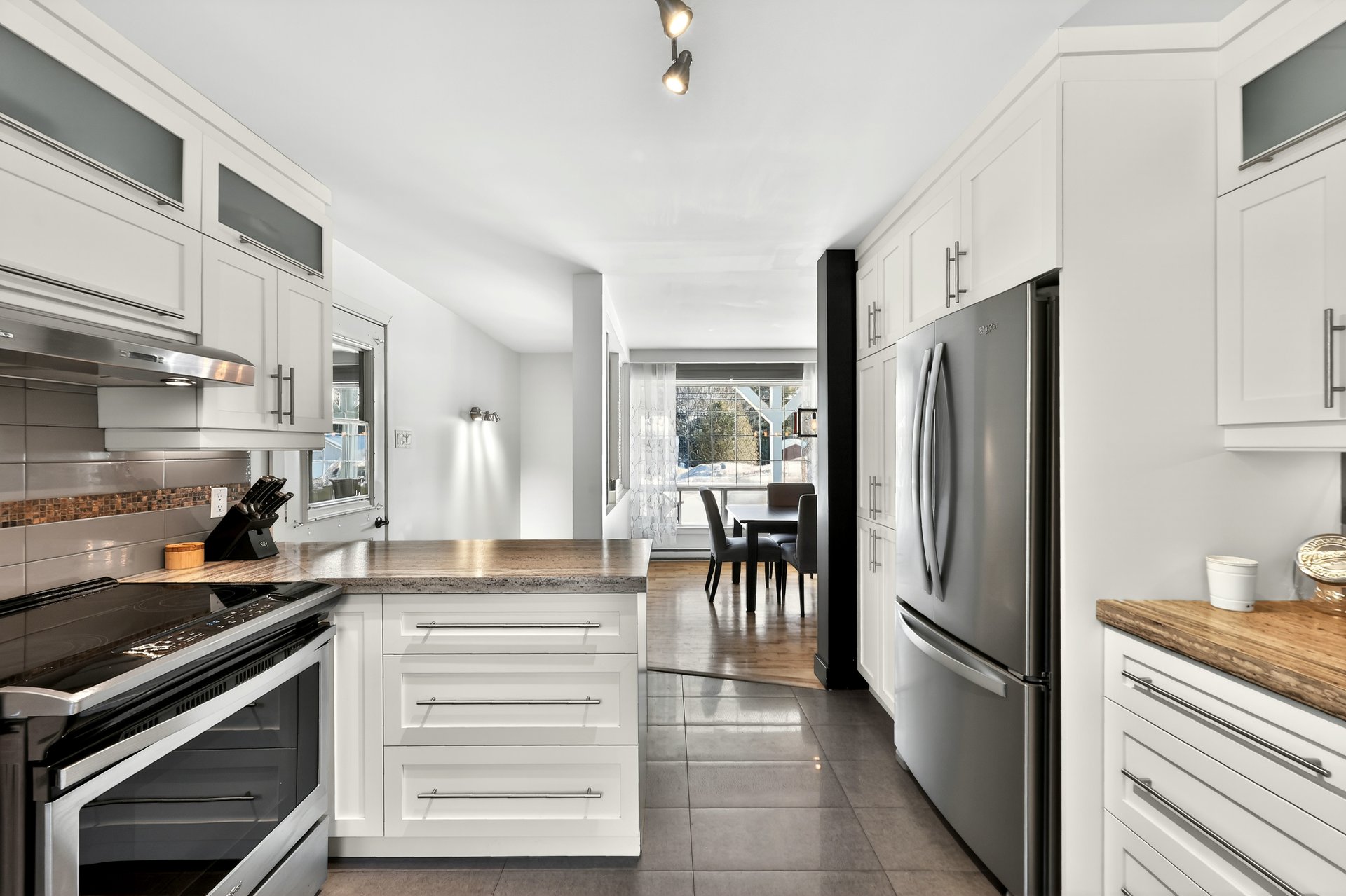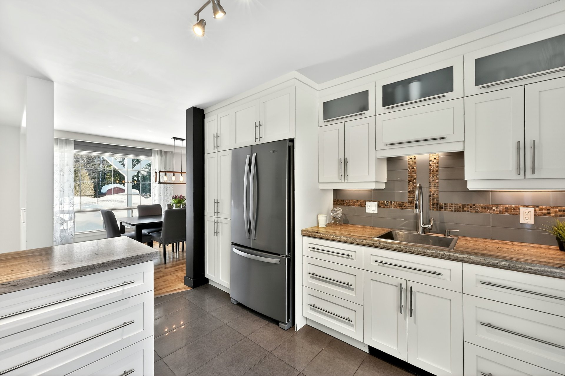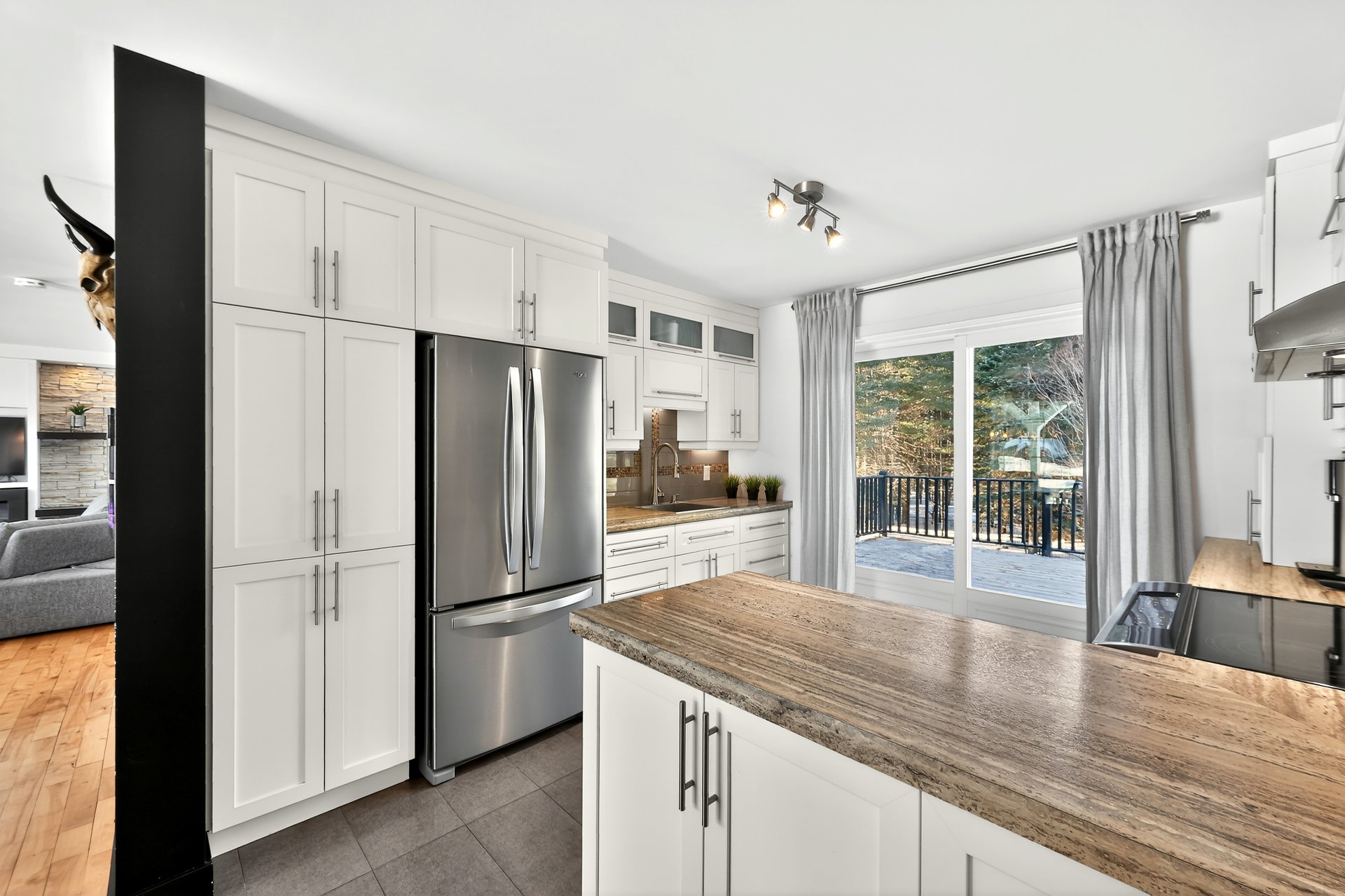 Inclus : Luminaires/stores/rideaux/foyer électrique salle à manger/réfrigérateur du sous-sol/thermopompe piscine et accessoires/tracteur à gazon/télévision sous-sol/armoire du garage/section avant de la clôture de piscine.
