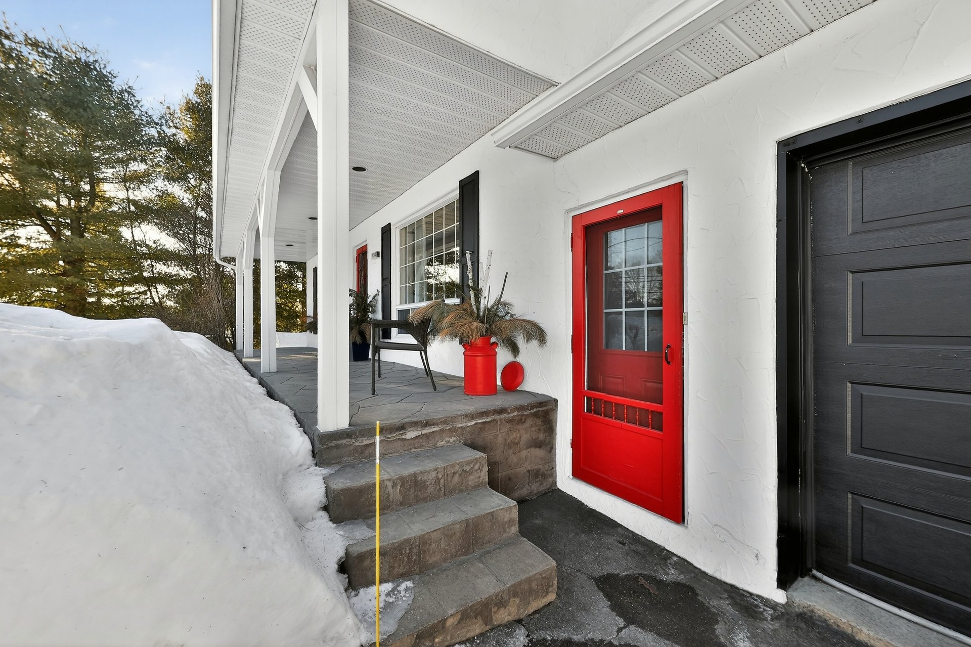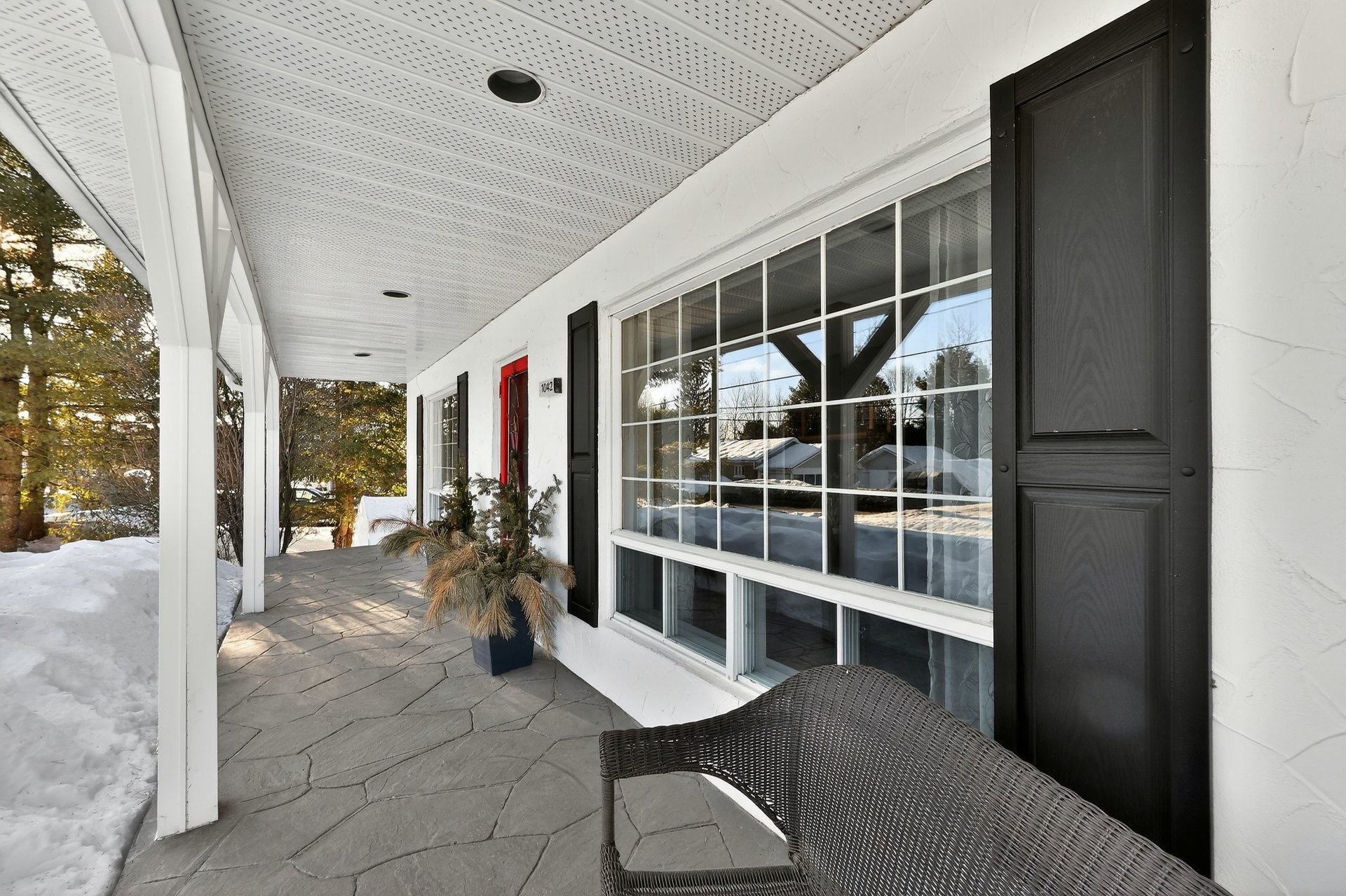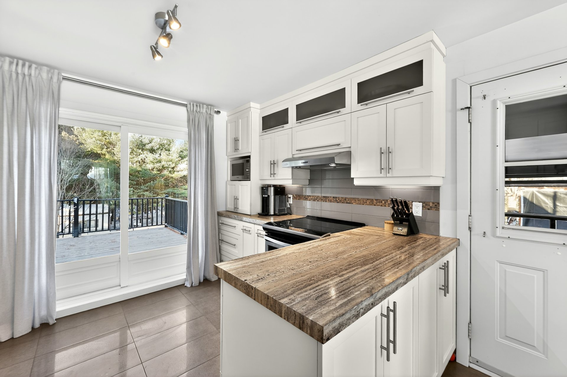 une porte-patio menant au balcon extérieur et à la cour. Ce