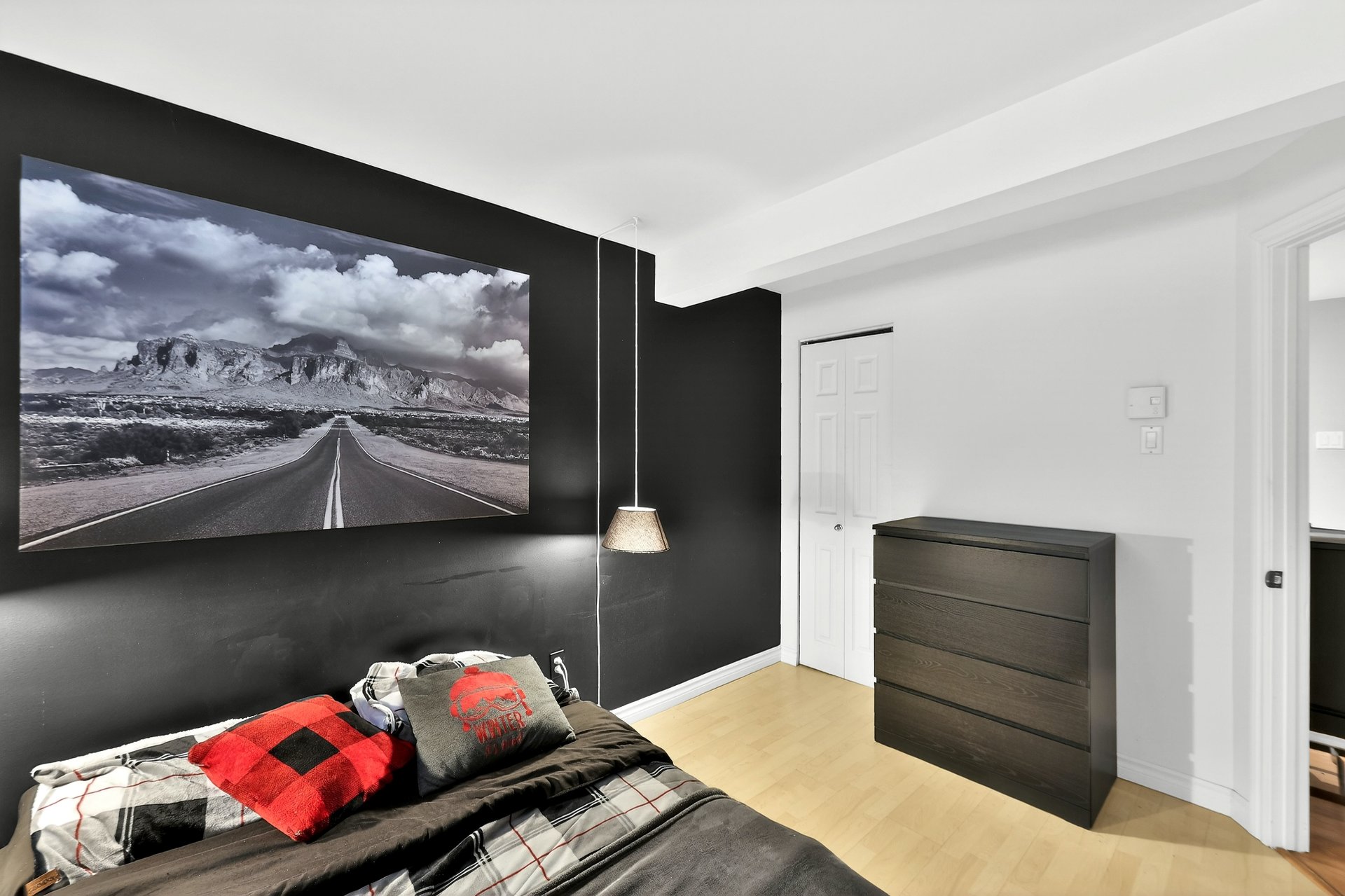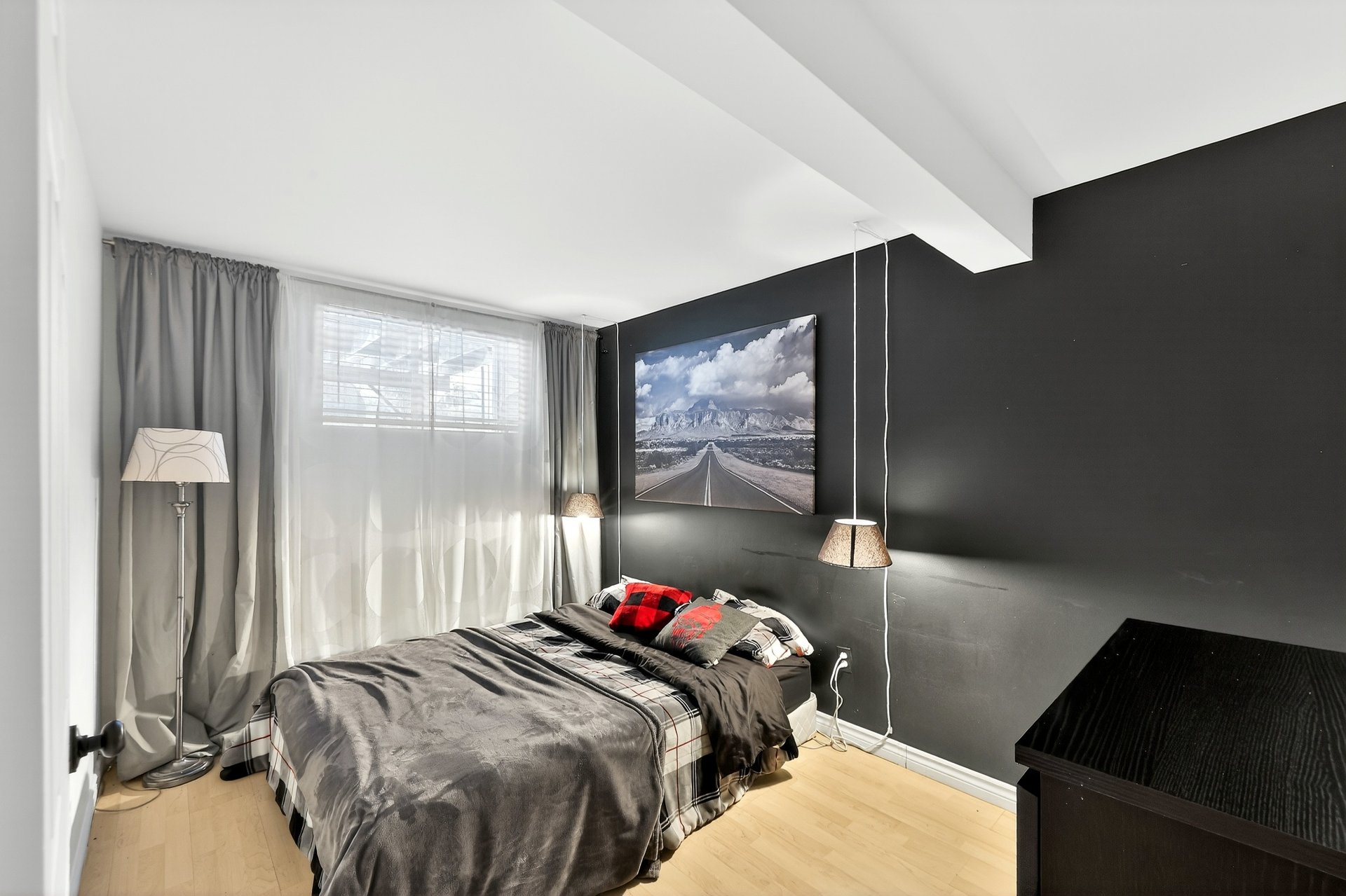 principale munie d'une grande fenêtre et d'un garde-robe.