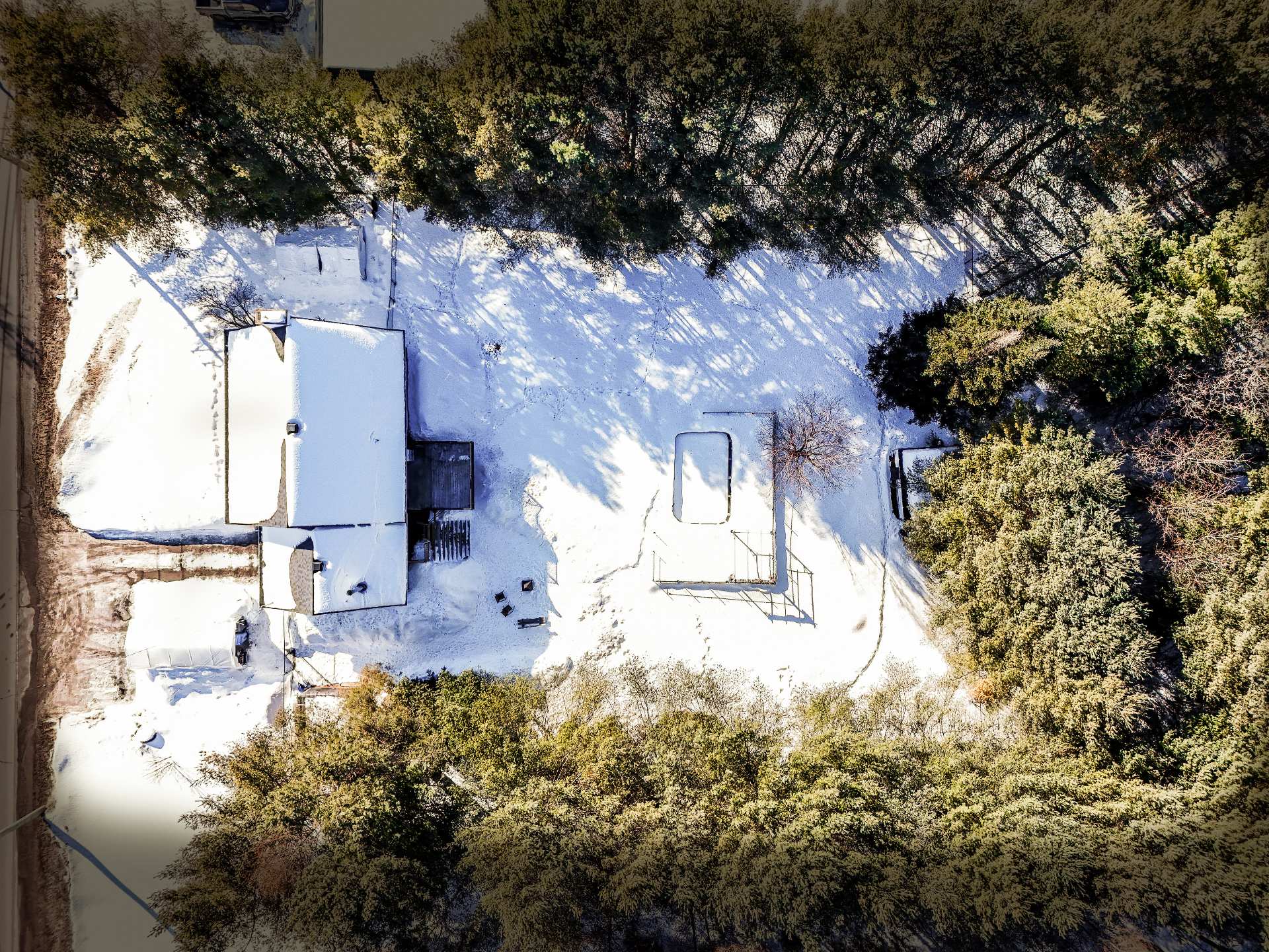 garage, une grande allée en terre et gravier située à