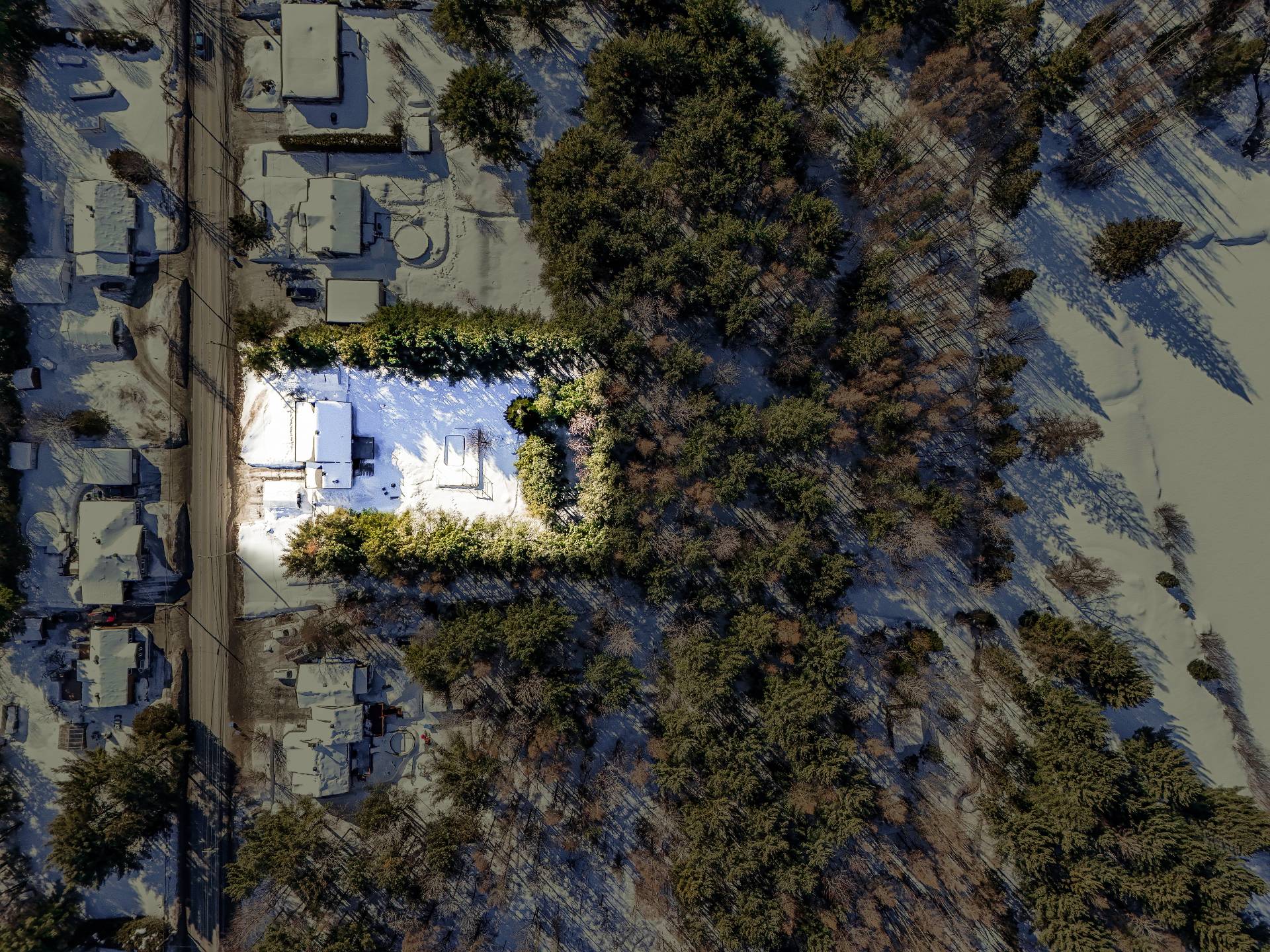 cour de plus de 22 000 pi², aménagée et bordée d'arbres