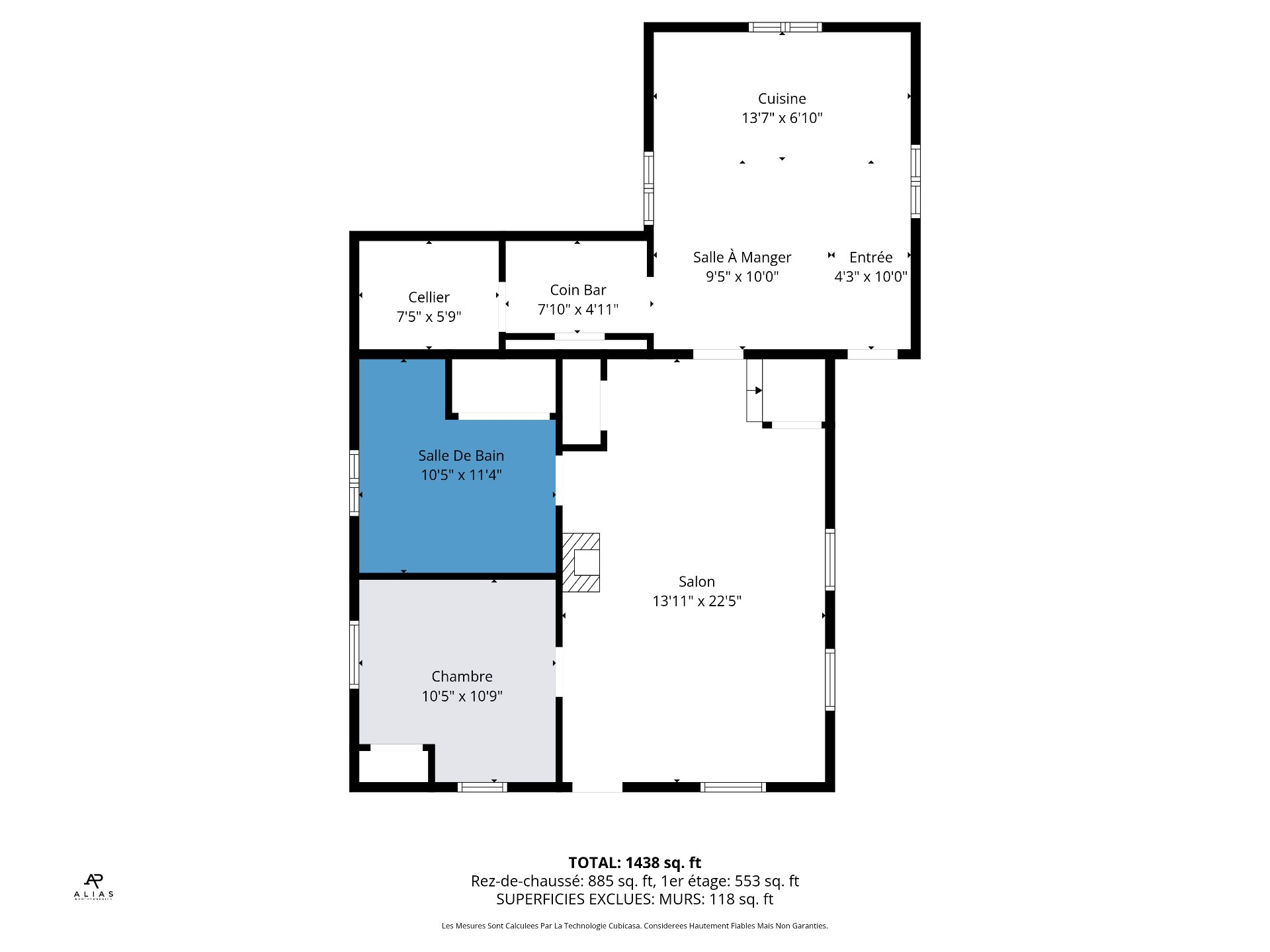 | Salle de bains | 10.5 x 11.4 P | RJ | Bois |