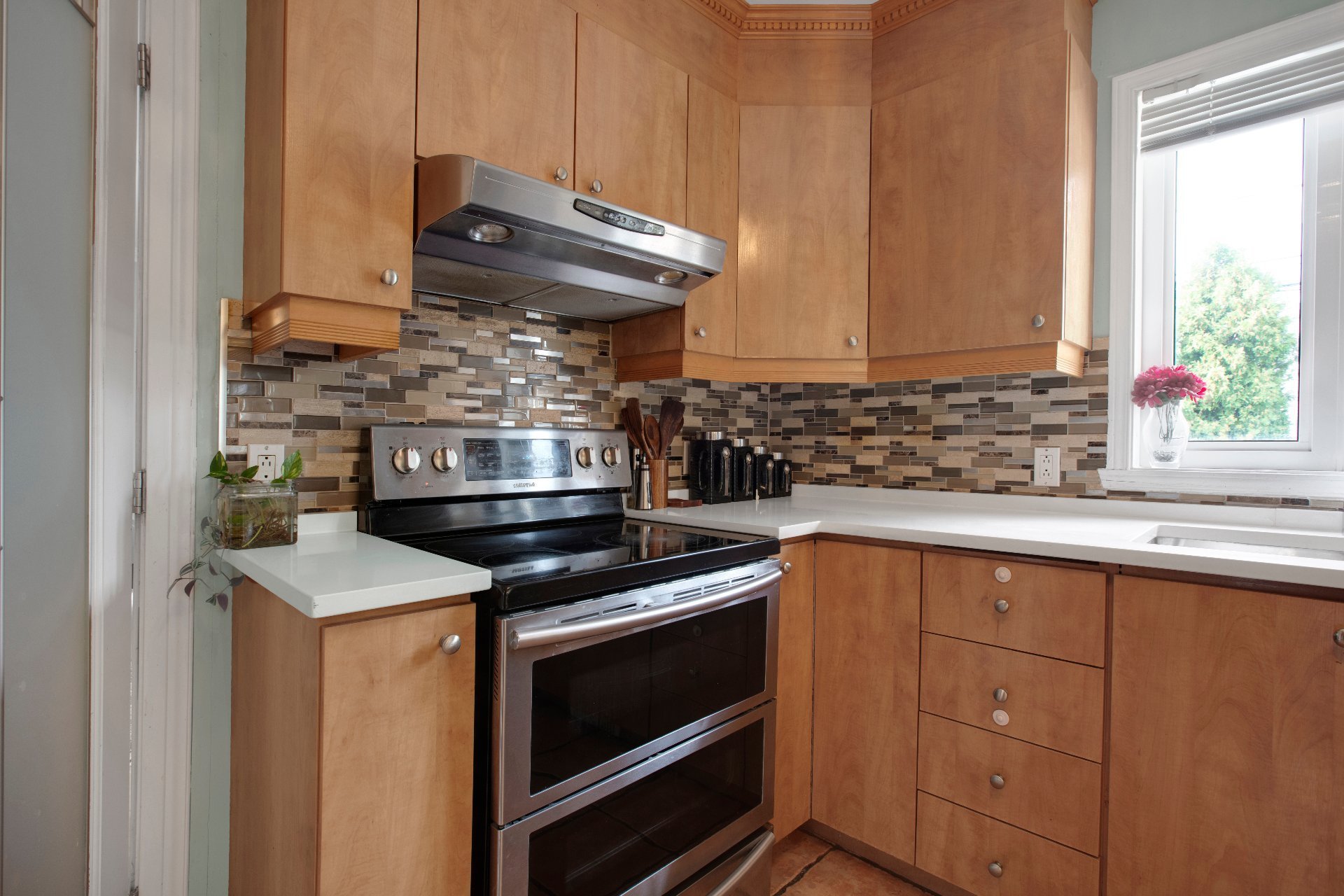 une céramique de qualité et une porte-patio donnant accès à