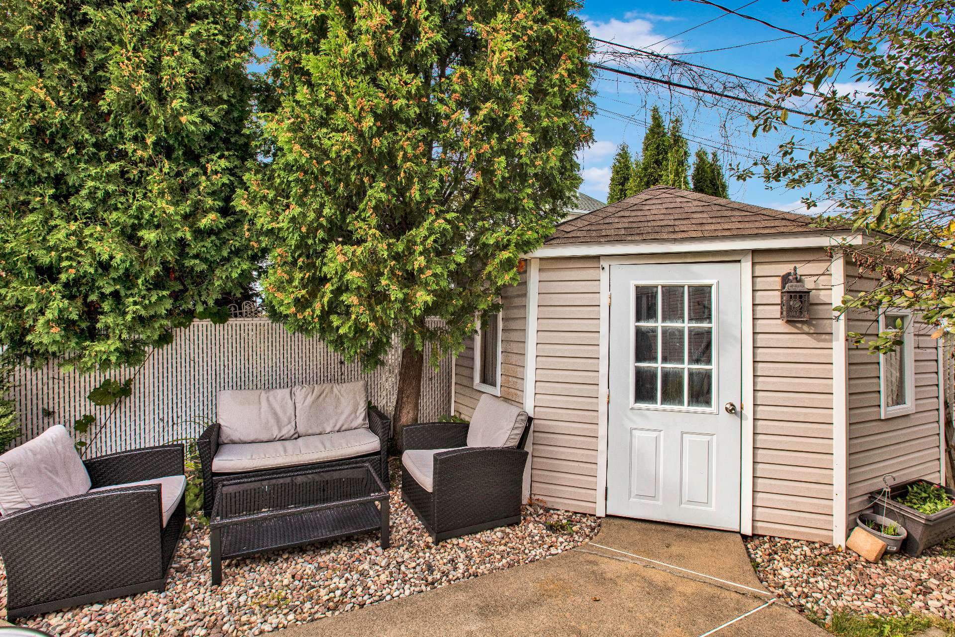 clôture sans entretien, cabanon et entrée en pavé uni