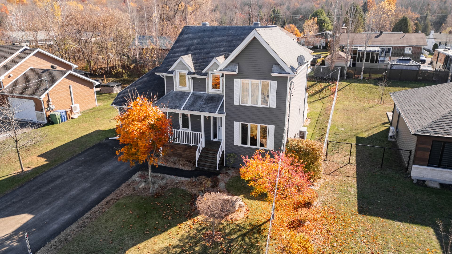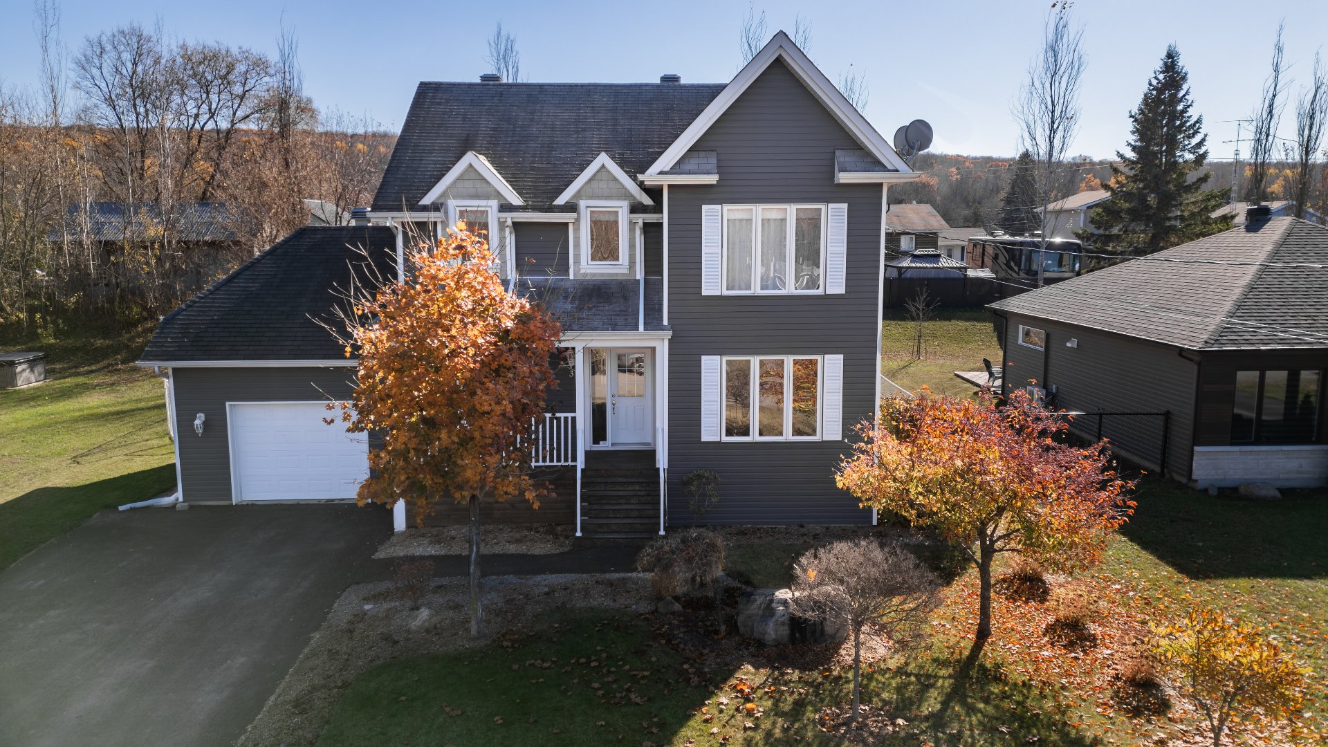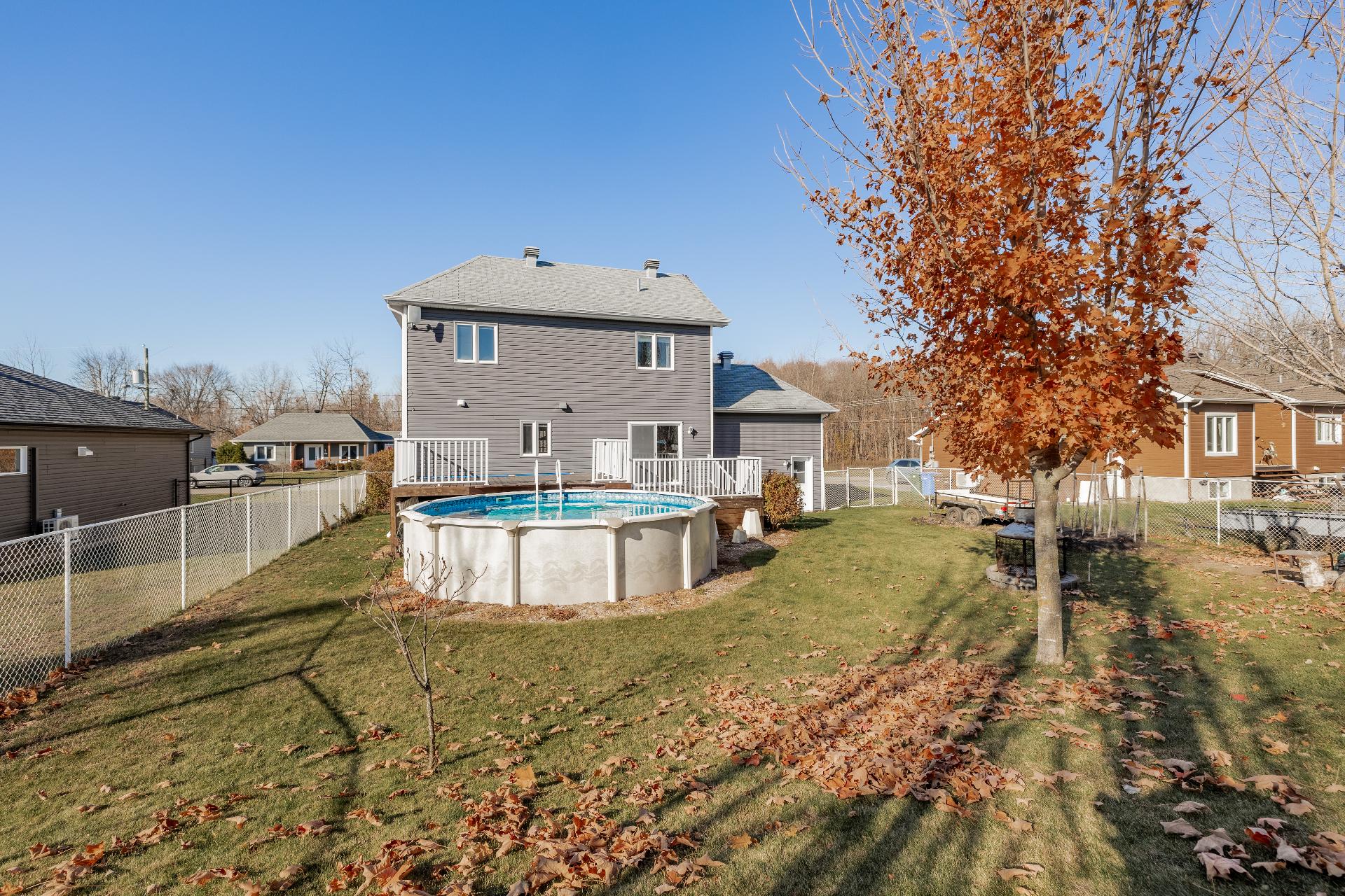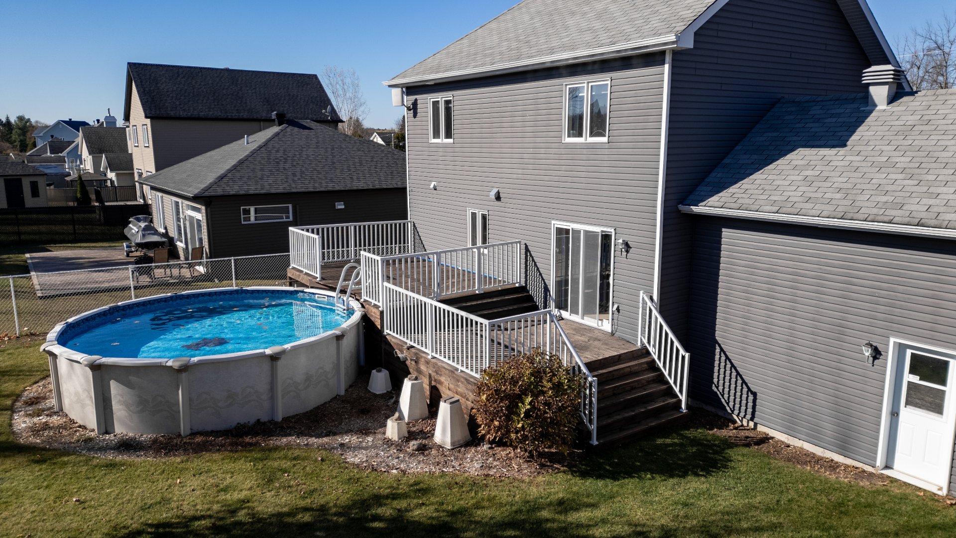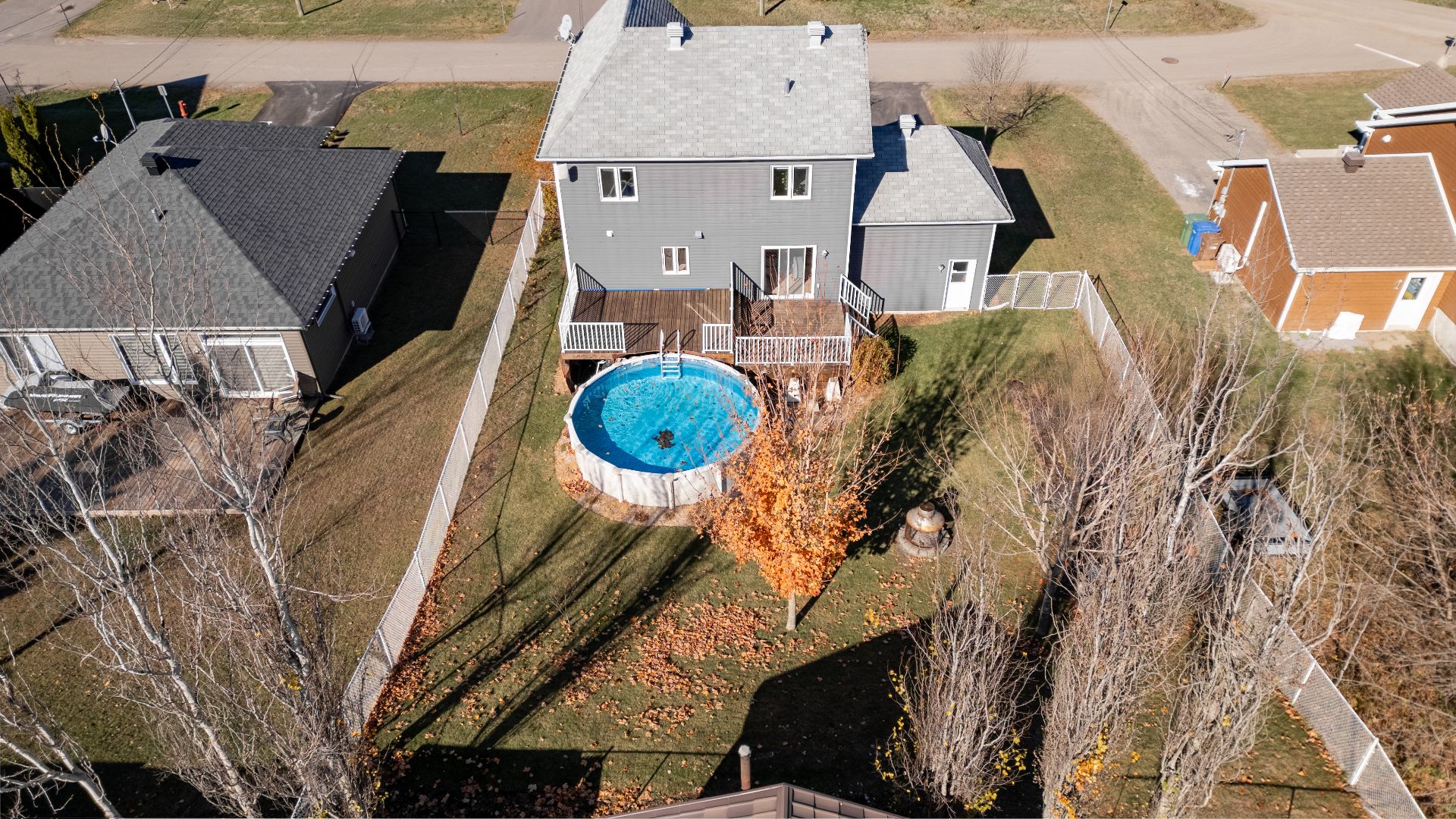 Maison unifamiliale sur deux étages, cuisine avec îlot, salle à manger menant à la terrasse. Trois chambres à l'étage dont une avec walk-in, salle de bains. Sous-sol aménagé avec salle familiale et rangement. Terrain paysagé, terrasse, avec piscine et espace gazonné. Grande allée de stationnement (6 véhicules). Secteur paisible.
