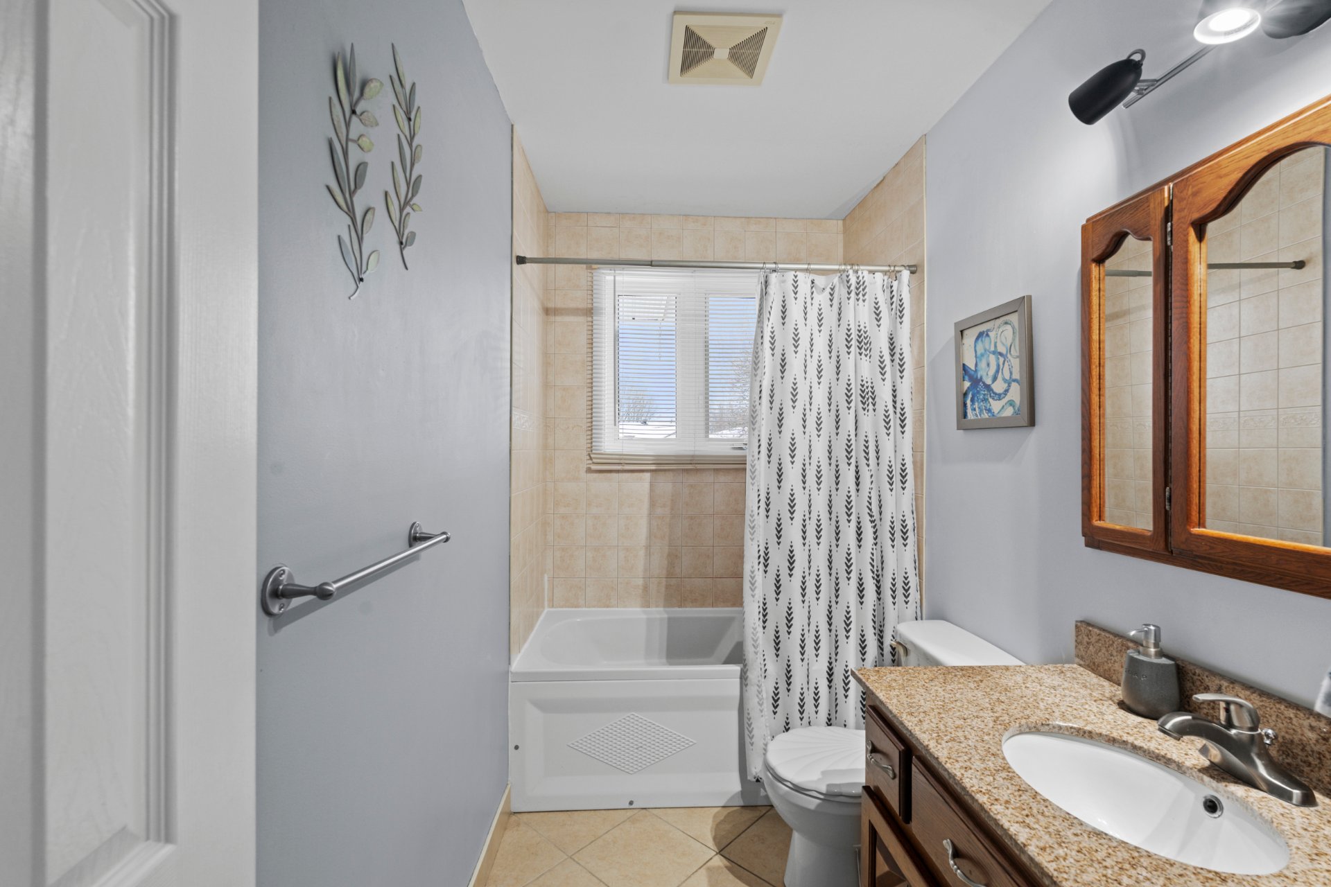 également deux chambres et une salle de bain complète.