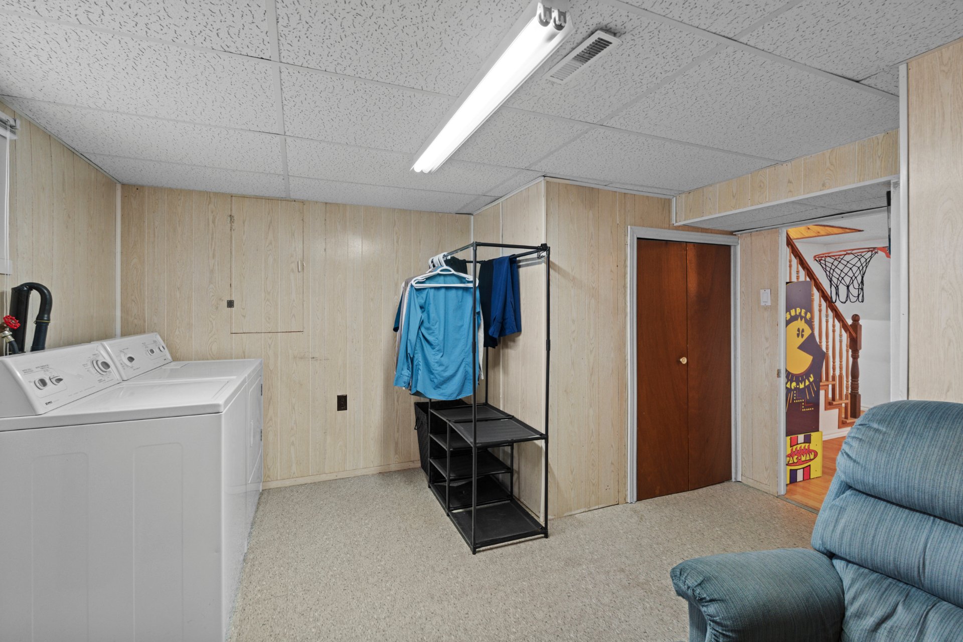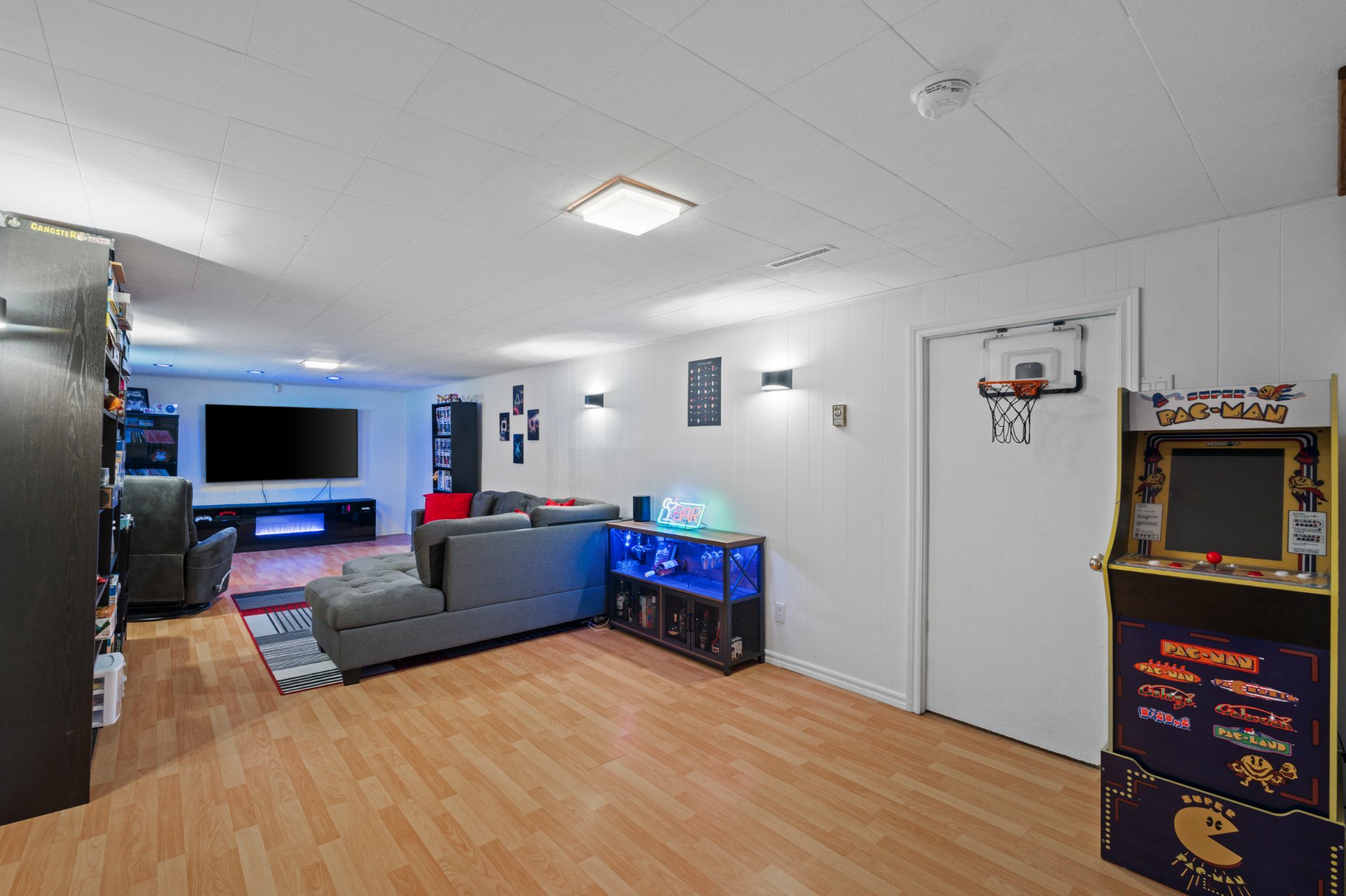 Au sous-sol, vous découvrirez une vaste salle familiale,