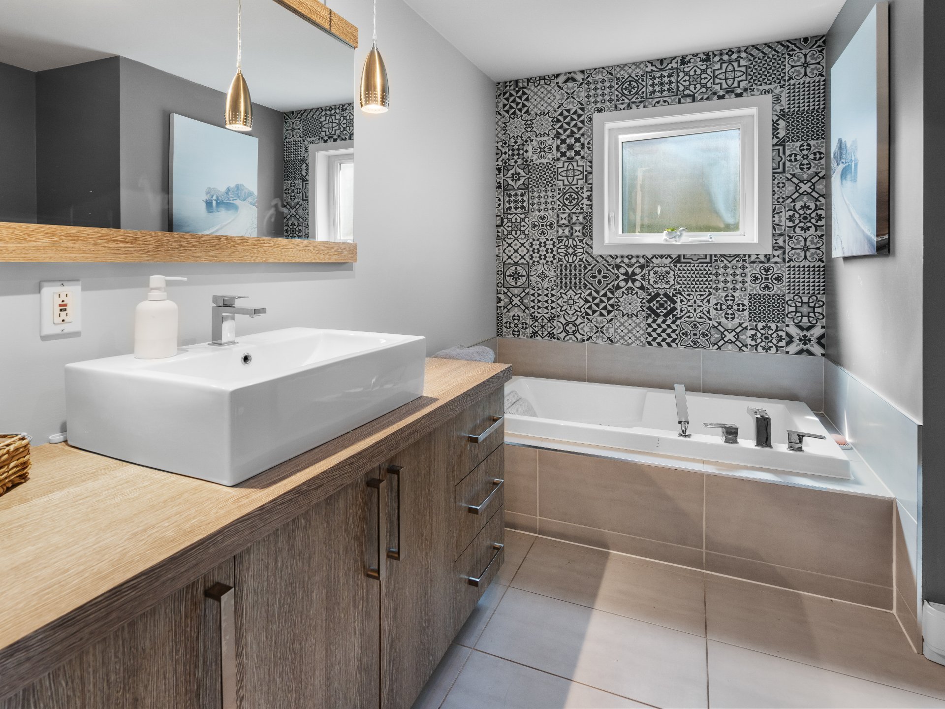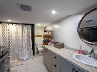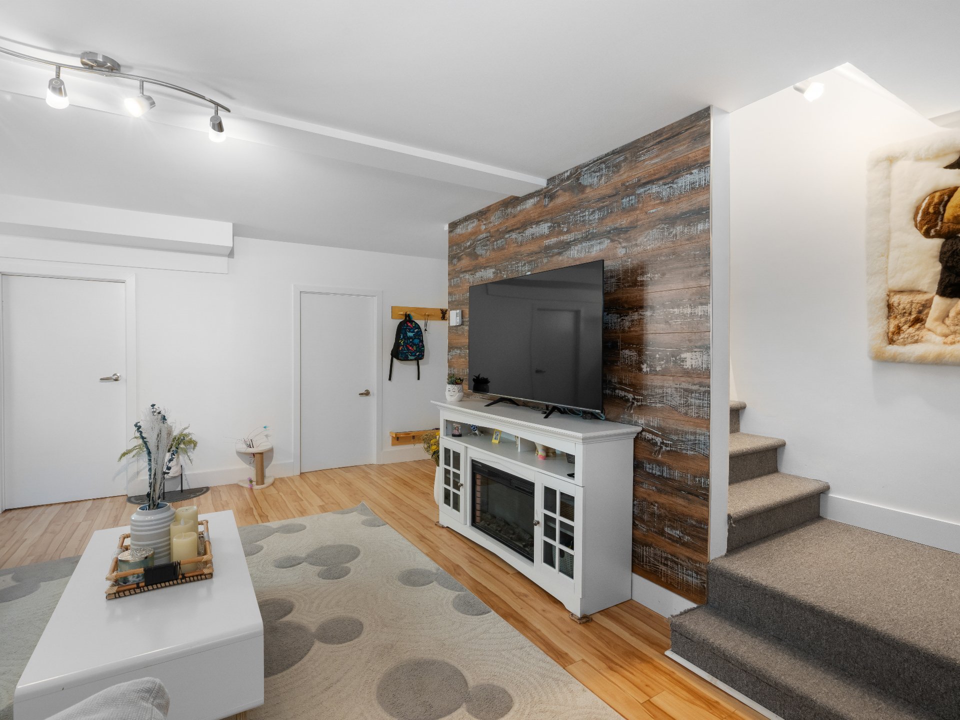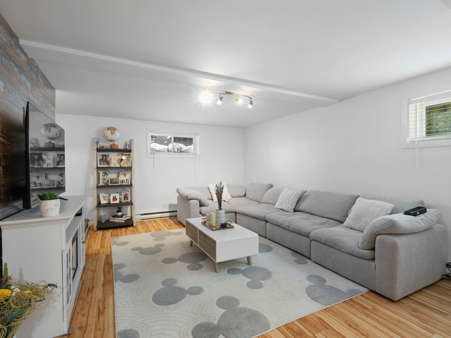 Le sous-sol entièrement aménagé ajoute un espace supplémentaire pour une salle familiale, un bureau à domicile ou une salle de jeux, permettant à chaque membre de la famille d'avoir son coin de confort.