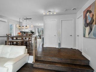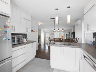 Cette charmante maison compte 3 chambres à coucher bien réparties + un grand espace bureau ainsi que 2 salles de bain complètes, idéale pour répondre aux besoins d'une famille. L'aire de vie principale est accueillante et moderne : une cuisine fonctionnelle avec beaucoup de rangement, comptoirs et îlot central s'ouvre sur la salle à manger et le salon, créant un espace convivial et lumineux. Les grandes fenêtres apportent une belle clarté naturelle tout au long de la journée.