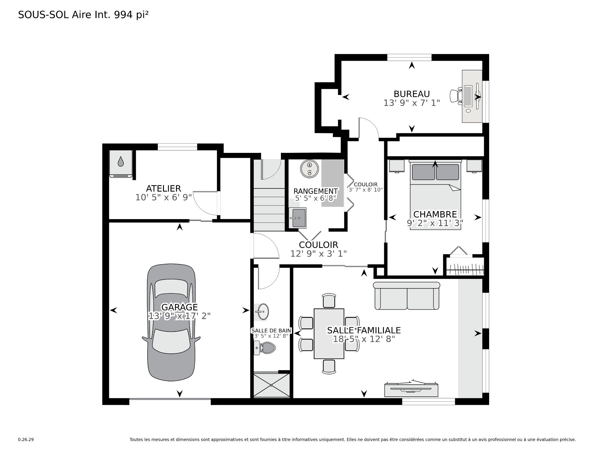 | Salle familiale | 18.6 x 12.8 P | Sous-sol | Plancher flottant |