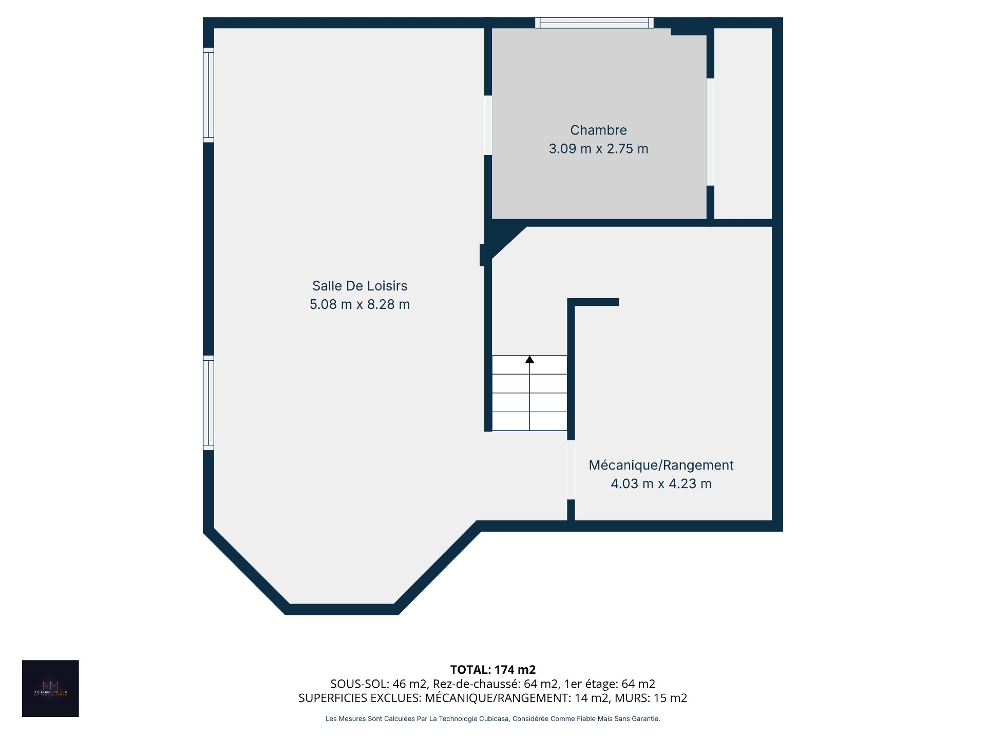 | Rangement | 4.3 x 4.23 M | Sous-sol | Béton |