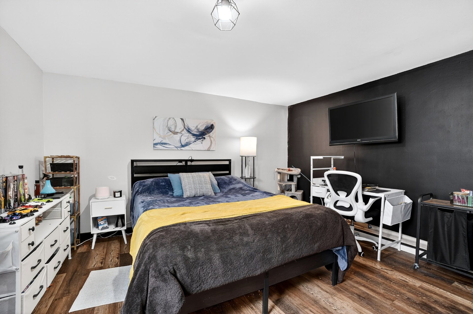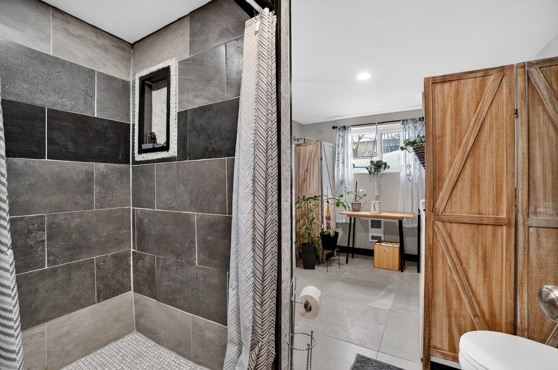 Le sous-sol, refait en 2024, maximise chaque espace avec plusieurs solutions de rangement, incluant un espace pratique sous l'escalier. Vous y trouverez également une grande chambre principale attenante à la salle de bain. Offrant plusieurs possibilités d'aménagement, soit une salle familiale au sous-sol, soit la conversion du salon en chambre supplémentaire, selon vos besoins.