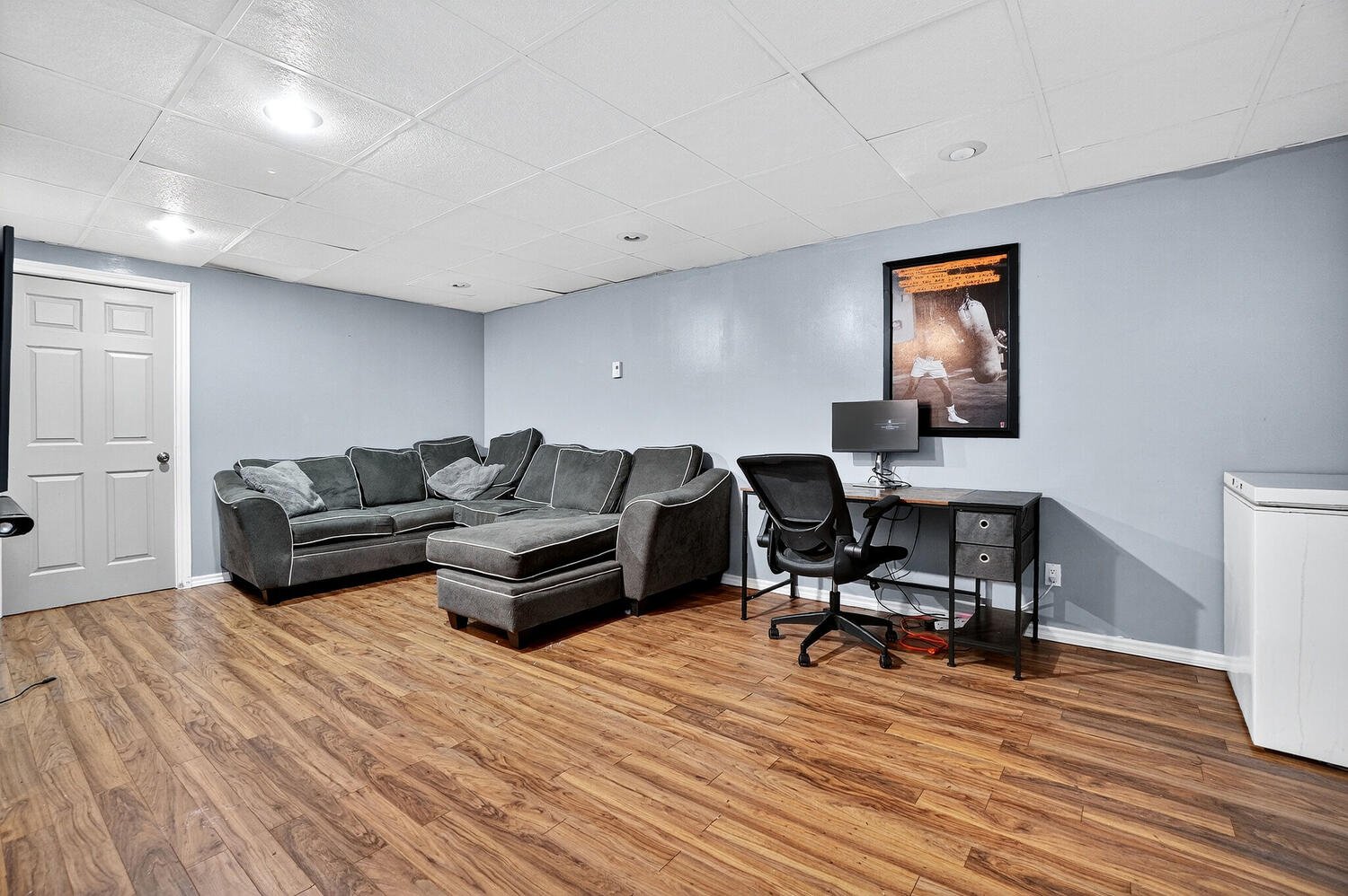 Le sous-sol aménagé ajoute un bel espace supplémentaire,
