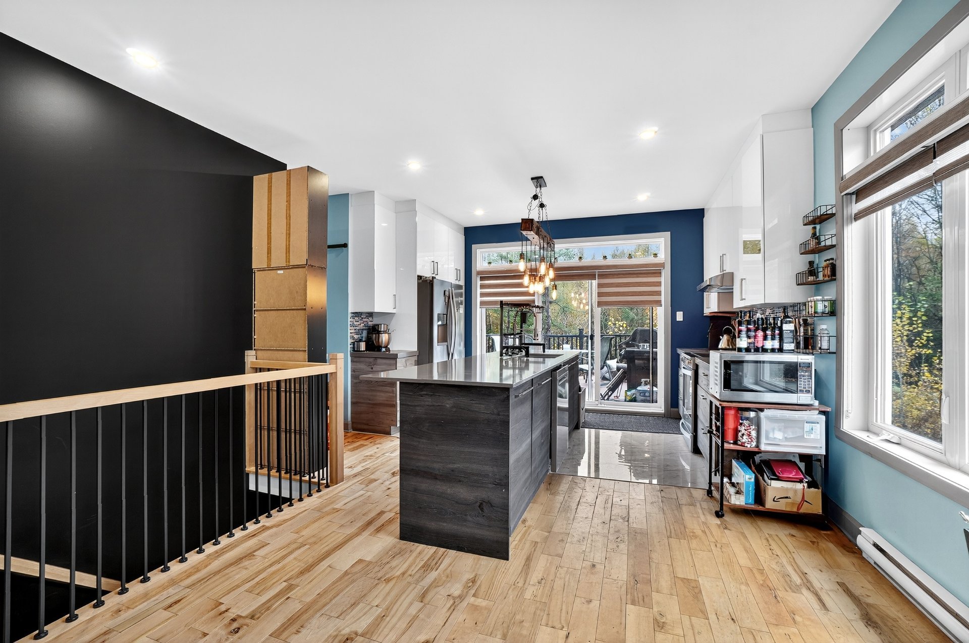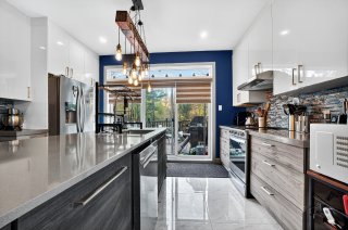 Inclus : Lave vaisselle, fixtures, store fait sur mesure, génératrice, table de chevet flottantes dans la chambre. Aménagement du garde mangé.