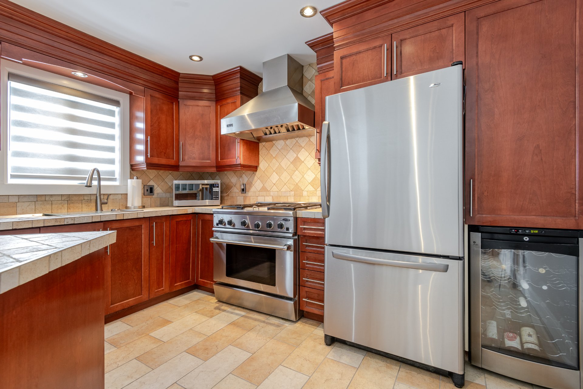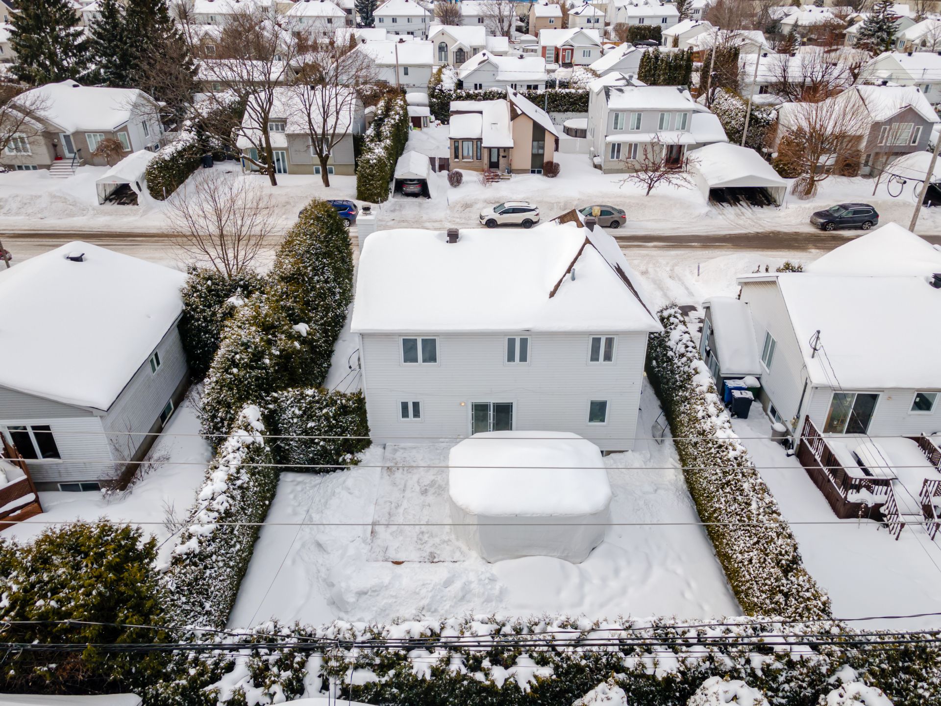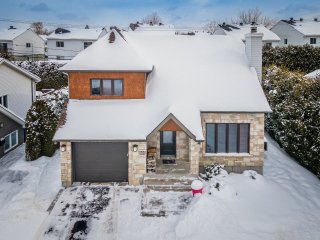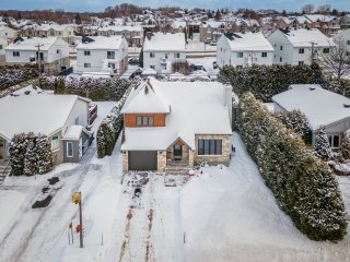 À seulement 1 km du REM, découvrez cette belle propriété lumineuse construite en 1992 et fièrement entretenue par son seul propriétaire. Offrant 3 chambres à l'ÉTAGE (rare dans le secteur) et possibilité d'une 4e au sous-sol. 1 salle de bain, 1 salle d'eau + 3e sdb possible au sous-sol. Planchers chauffants (cuisine, salle à manger, salle d'eau). Terrain de 5034 pi², cour intime entourée de haies matures, solarium 3 saisons, garage. Rénovations: toiture, fenêtres, façade, cuisine, sous-sol. Visite libre dimanche 15 février, 13h à 16h. 514-601-1197