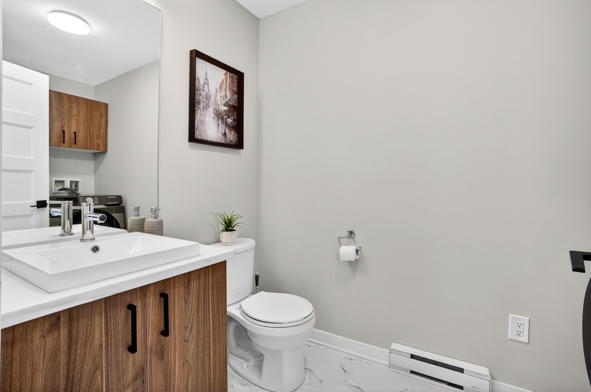 Le rez-de-chaussée comprend également une salle de lavage pratique, un atout recherché au quotidien.