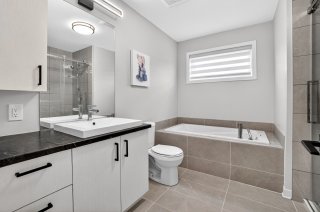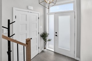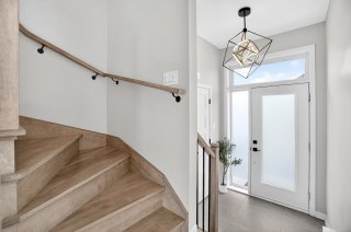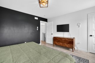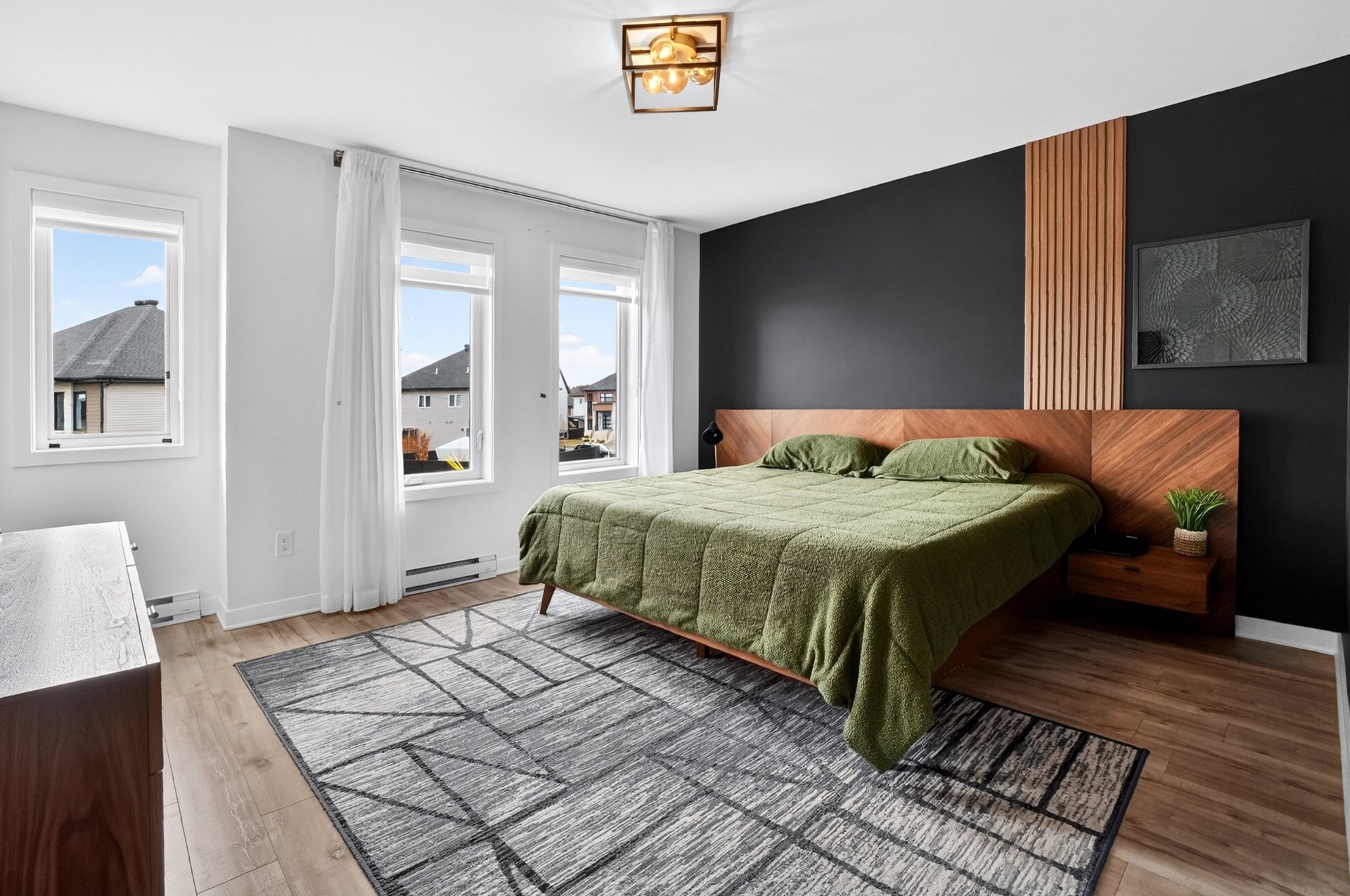 À l'étage, vous trouverez 3 chambres à coucher de bonnes dimensions, parfaites pour une jeune famille ou un professionnel souhaitant un espace bureau. La chambre principale offre un environnement épuré et actuel, avec mur accent et finition haut de gamme.