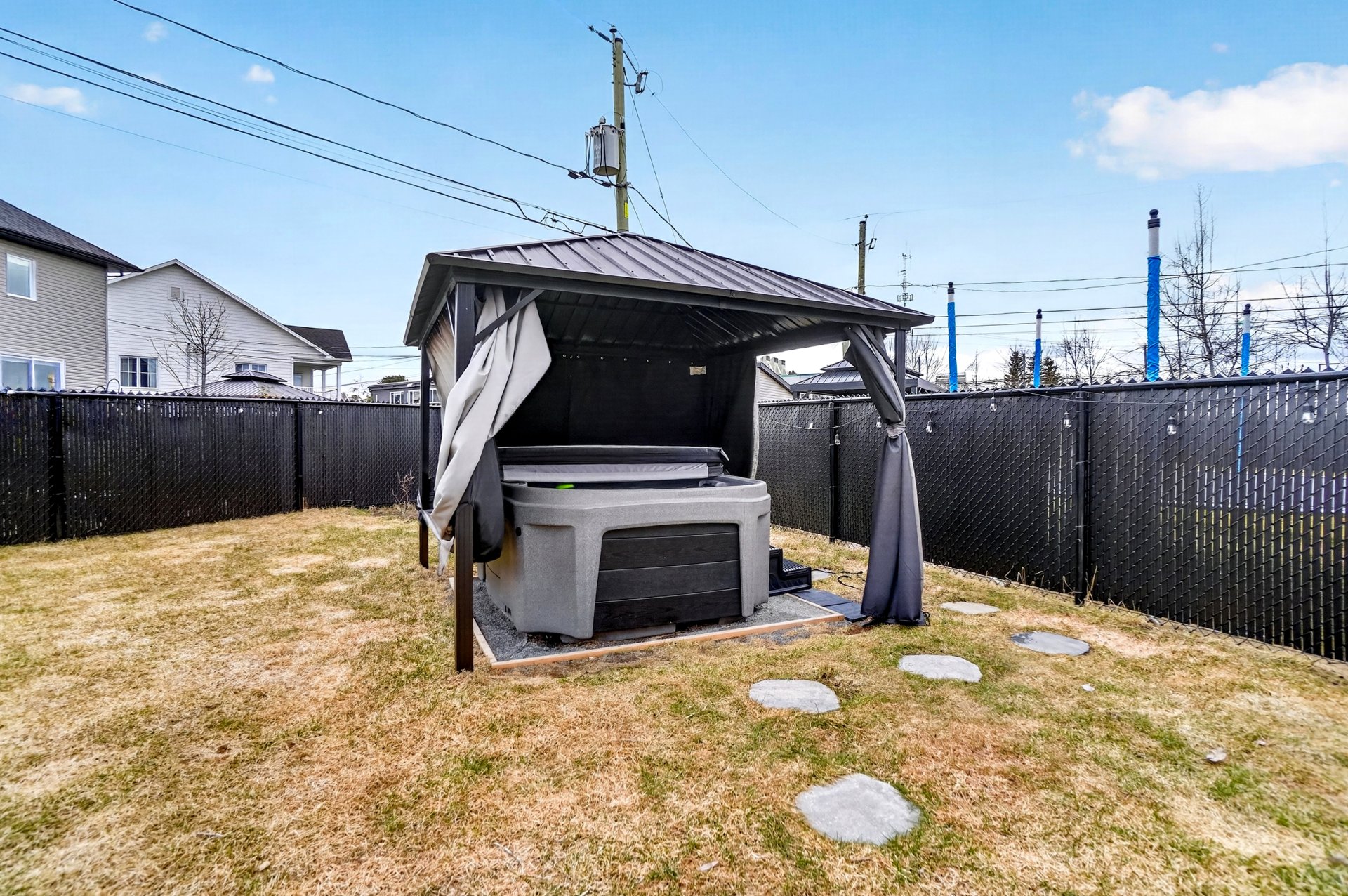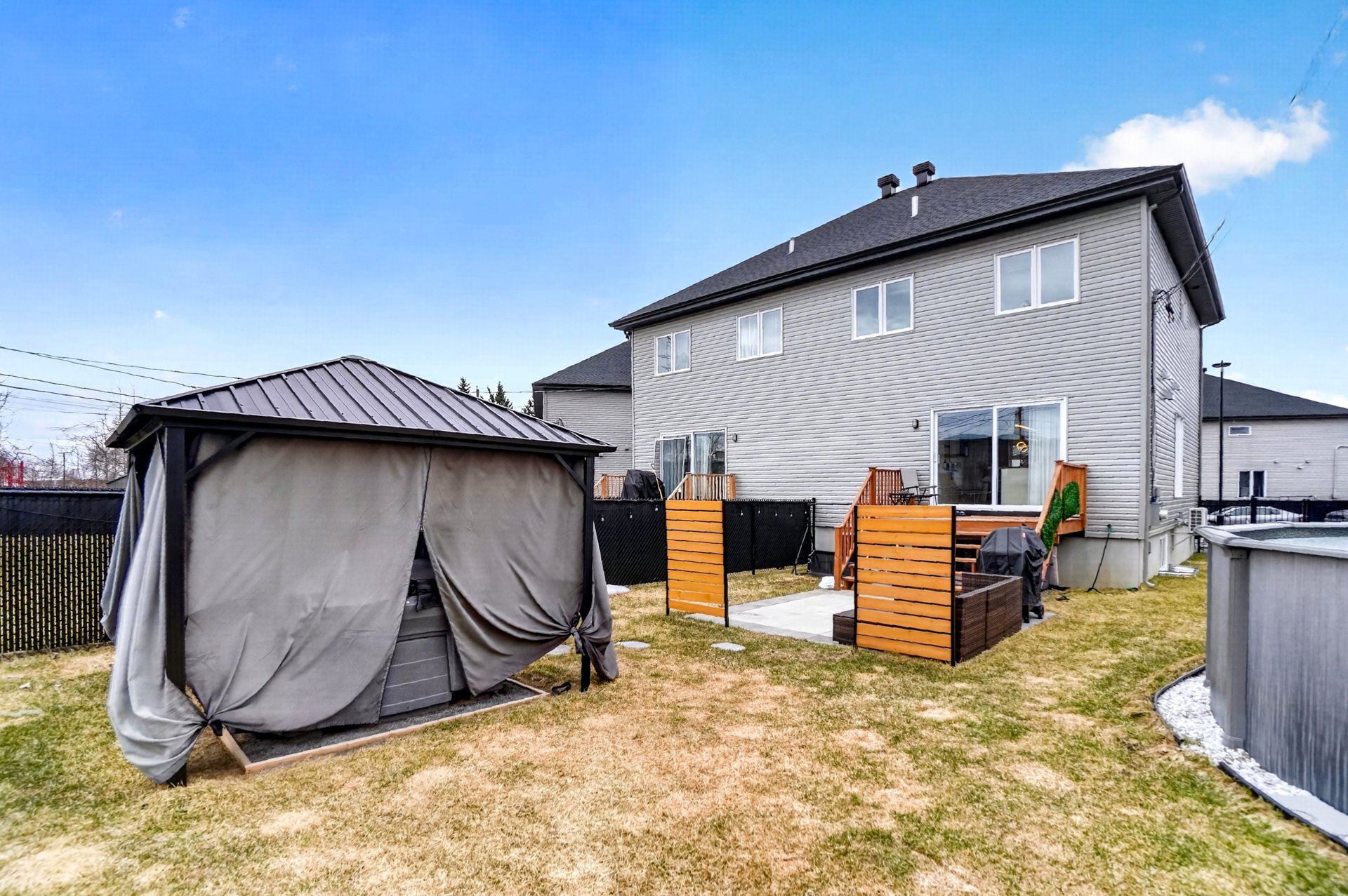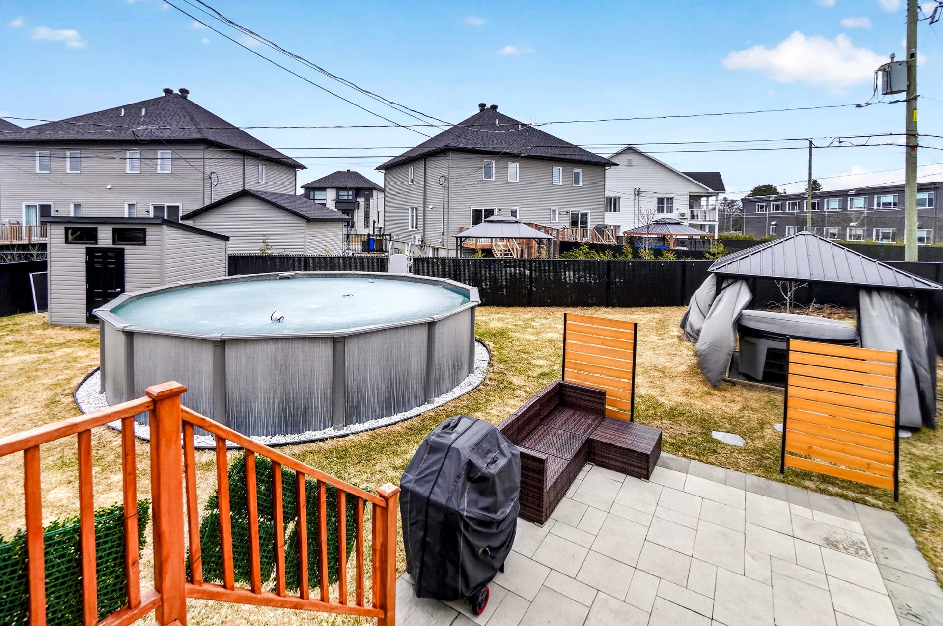 Piscine hors terre 21 pieds (2025) Spa Balboa (2024) Gazebo 12x12 avec toit rigide Terrasse en pavé uni 12x12 Pelouse neuve Cabanon en charpente (2024) avec panneau électrique Aménagement complet prêt à profiter dès le premier jour