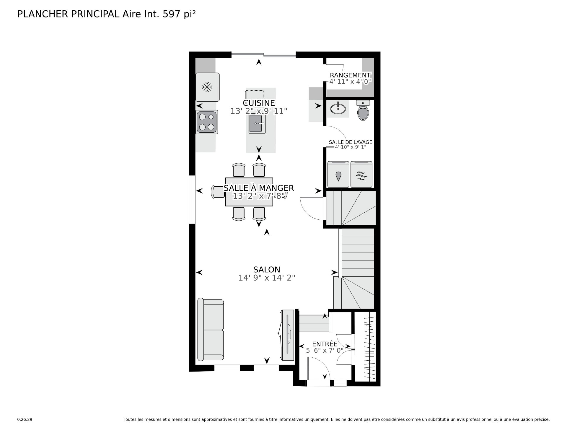 | Salon | 14.9 x 14.2 P | Rez-de-chaussée | Plancher flottant |