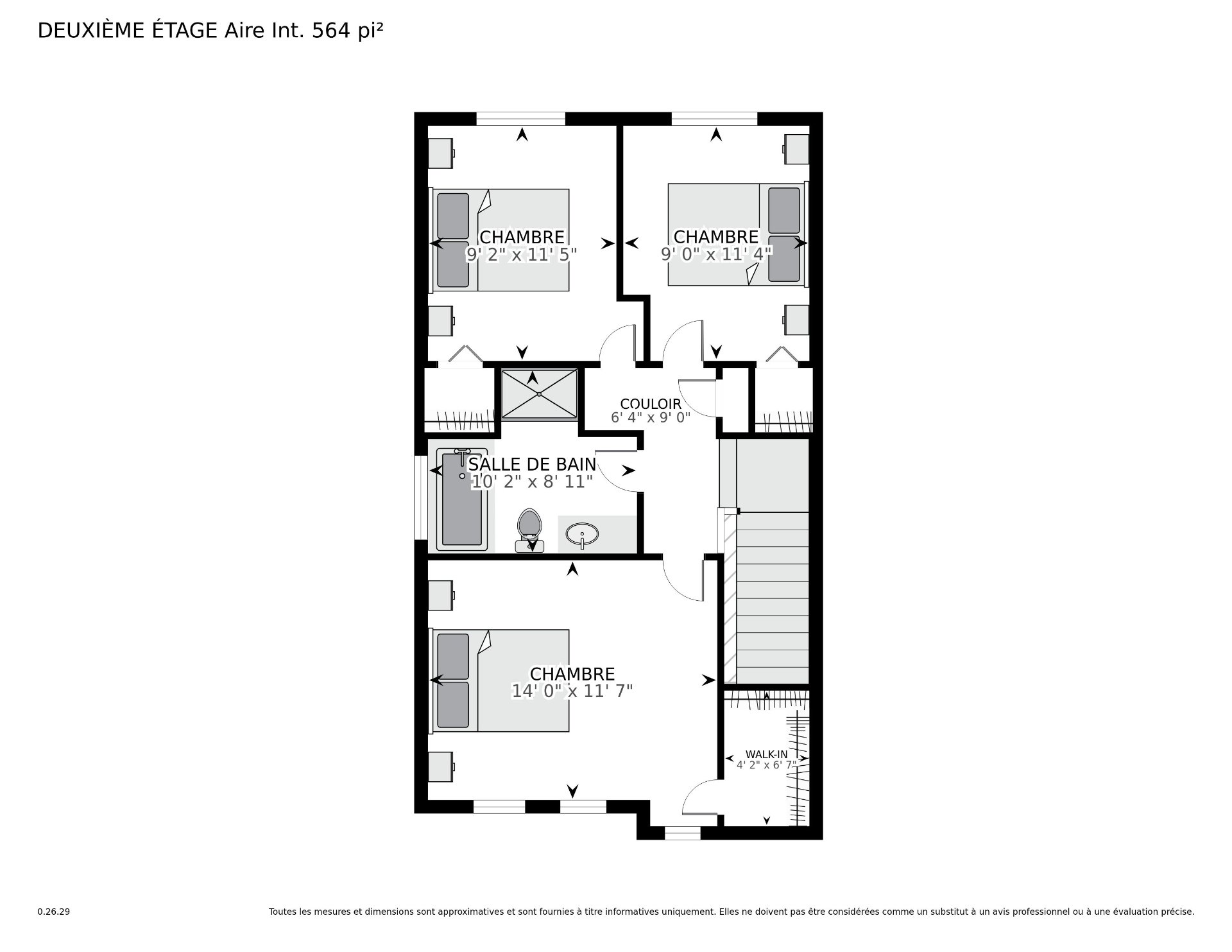 | Chambre à coucher | 9 x 11.4 P | 2ième étage | Plancher flottant |