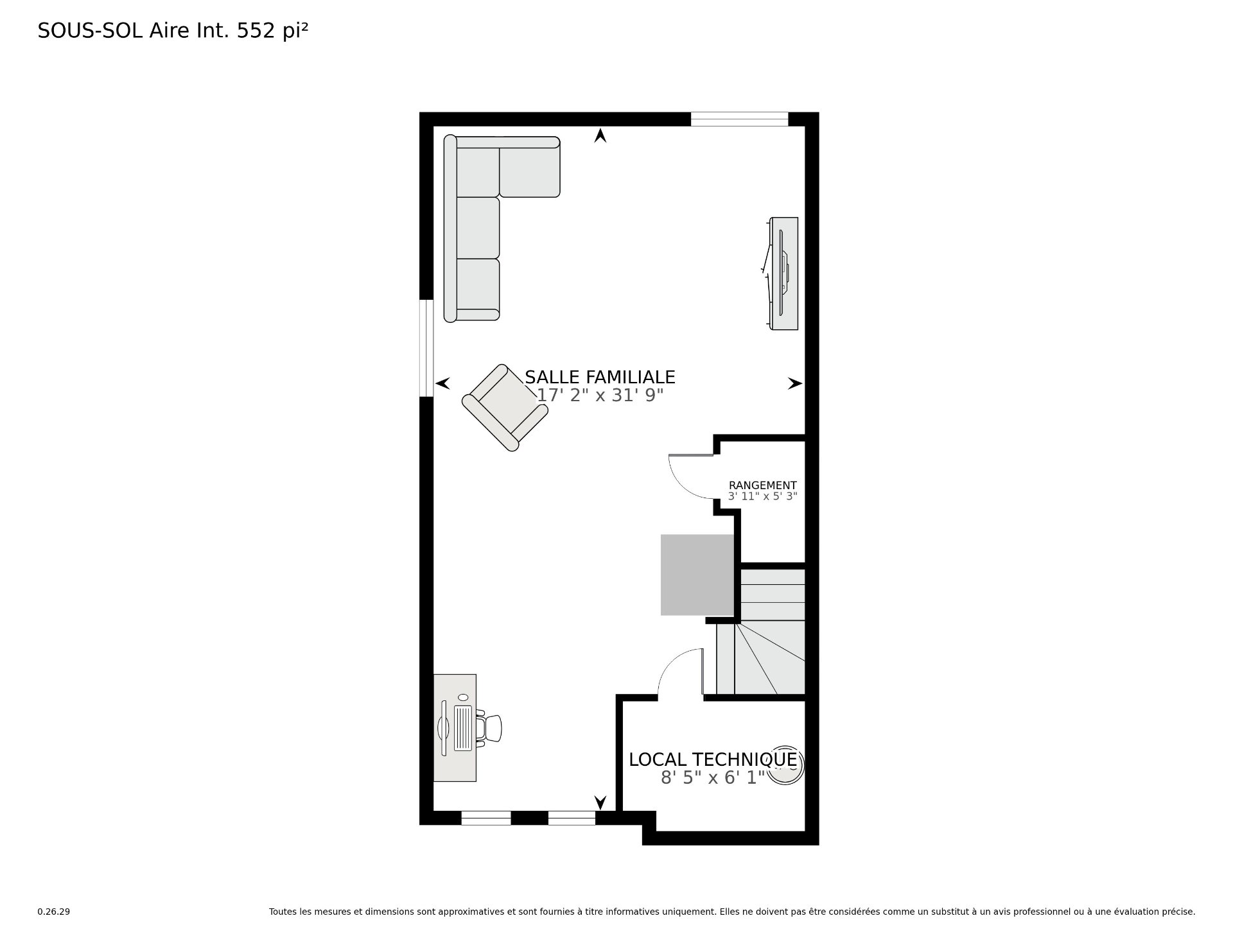 | Salle familiale | 17.2 x 31.9 P | Sous-sol | Plancher flottant |