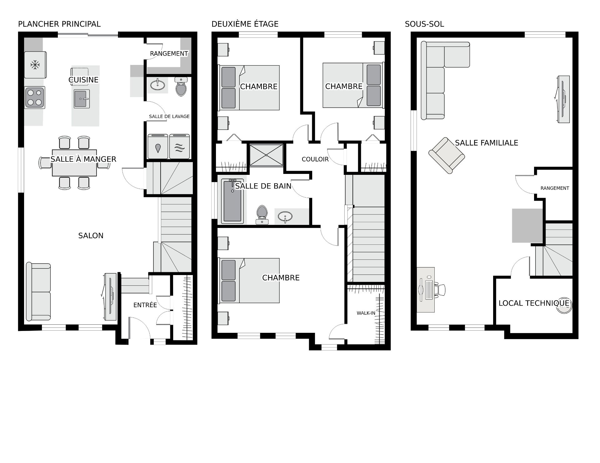 | Penderie (Walk-in) | 4.2 x 6.7 P | 2ième étage | Plancher flottant |