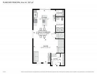 | Salle à manger | 13.2 x 7.8 P | Rez-de-chaussée | Plancher flottant |