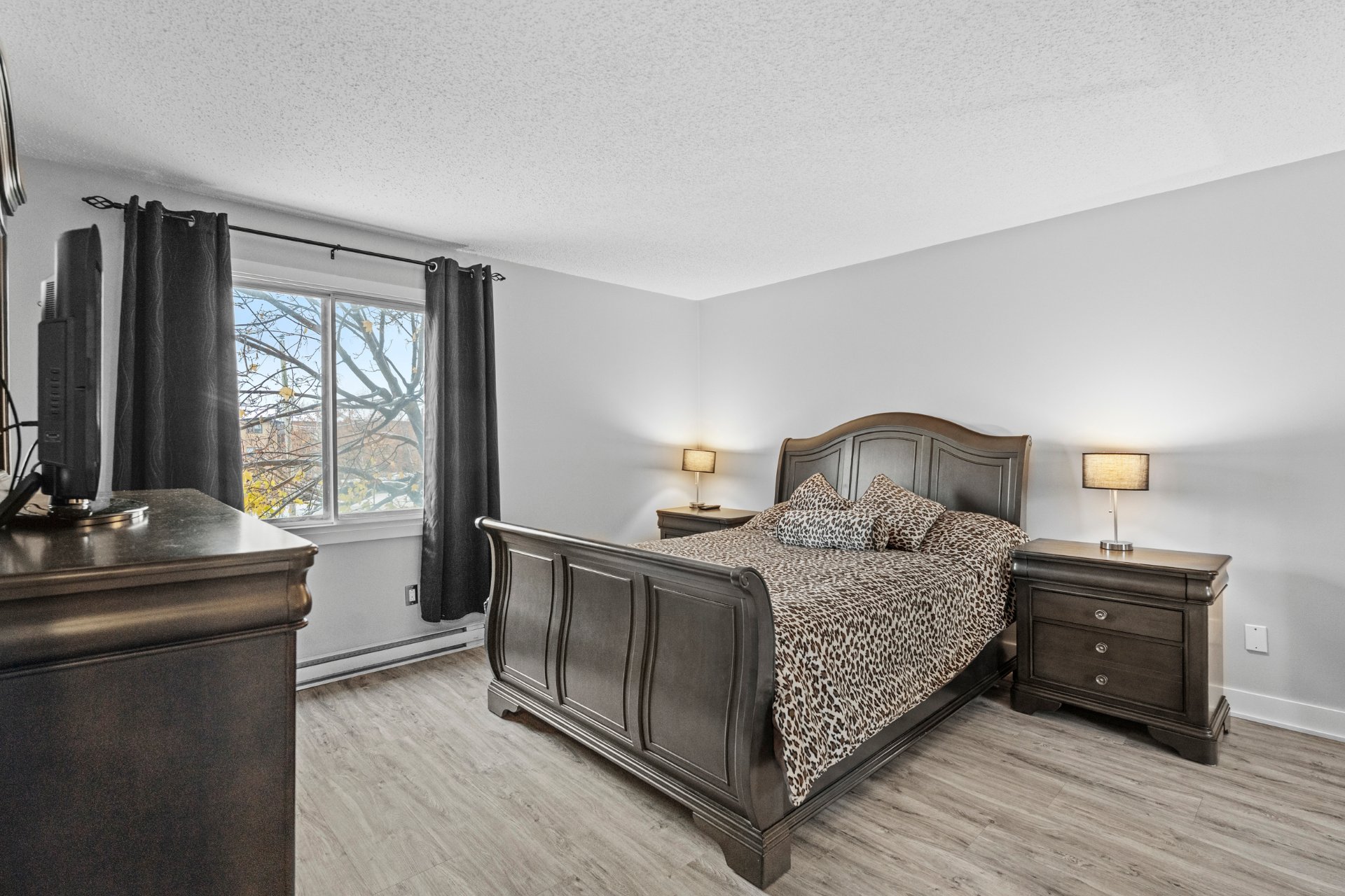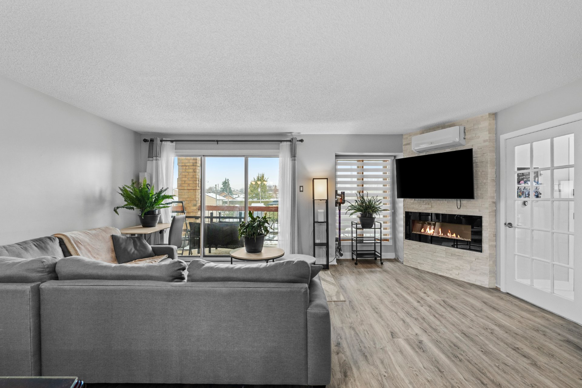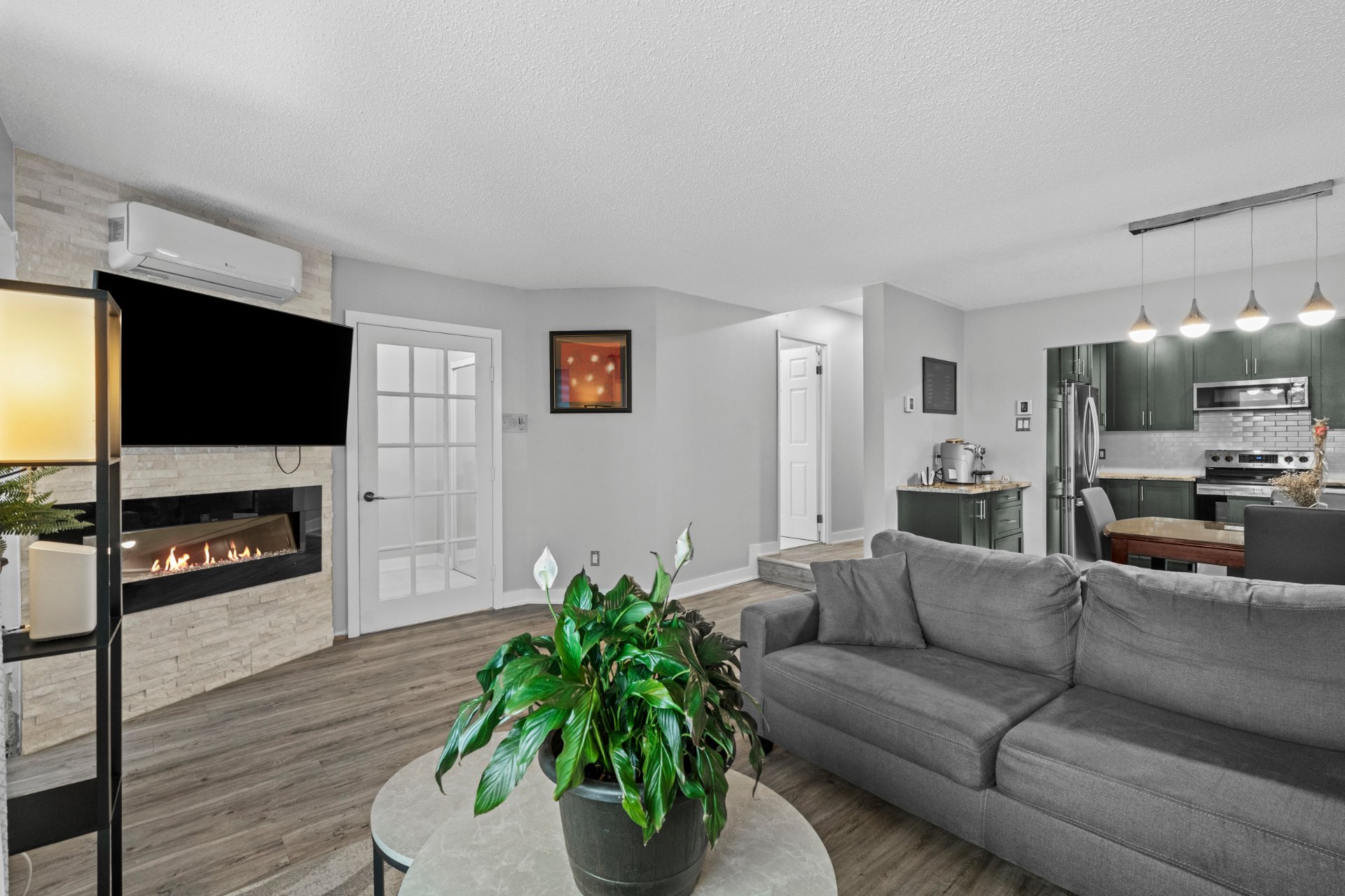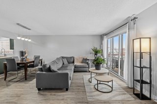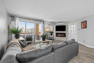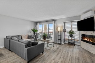Superbe unité de 976 pi² au coeur de Vimont, offrant un espace lumineux et harmonieux. Hall d'entrée fermé, salon avec foyer et mur de briques, cuisine à aire ouverte avec comptoirs en granite et meuble à café sur mesure. Salle de bain moderne avec bain autoportant, douche en coin et espace lavage discret. Deux chambres, dont une avec accès au balcon et à la piscine chauffée au sel. Stationnement extérieur et espace de rangement inclus. Emplacement idéal près de l'hôpital, commerces, parcs et transports.