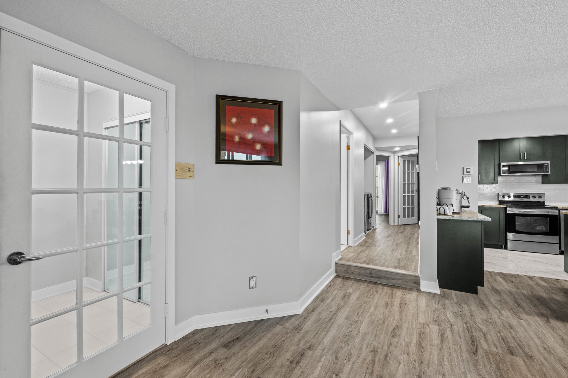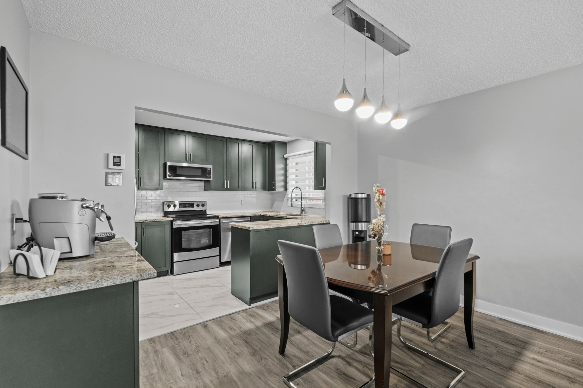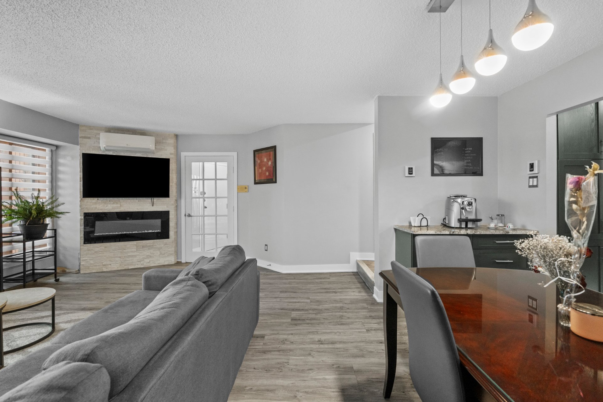 Superbe unité de 976 pi² au coeur de Vimont, offrant un espace lumineux et harmonieux. Hall d'entrée fermé, salon avec foyer et mur de briques, cuisine à aire ouverte avec comptoirs en granite et meuble à café sur mesure. Salle de bain moderne avec bain autoportant, douche en coin et espace lavage discret. Deux chambres, dont une avec accès au balcon et à la piscine chauffée au sel. Stationnement extérieur et espace de rangement inclus. Emplacement idéal près de l'hôpital, commerces, parcs et transports.