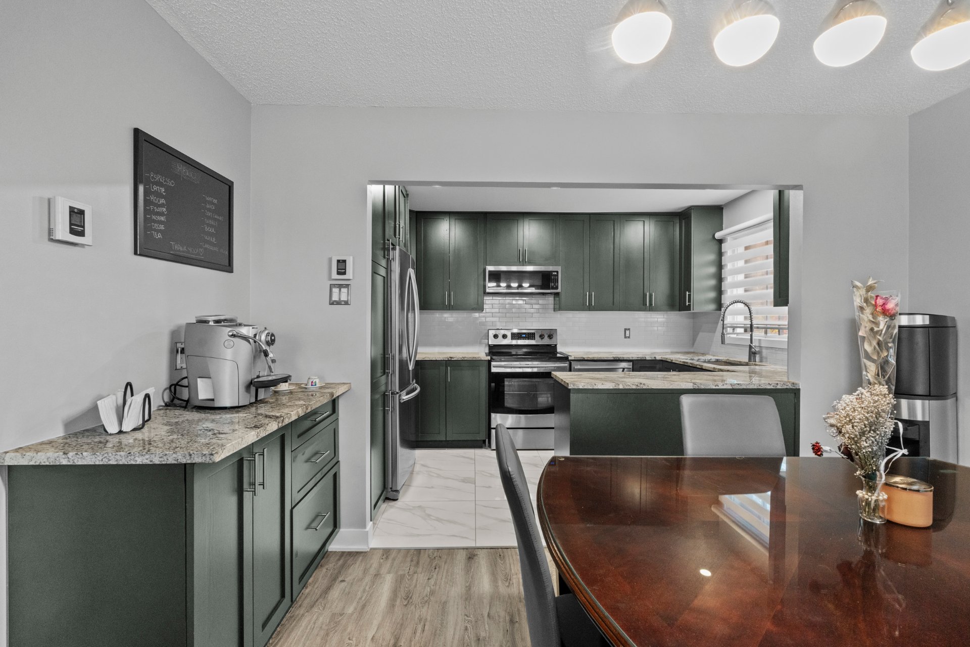 comptoirs en granite et d'un meuble à café sur mesure.