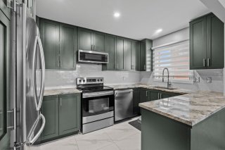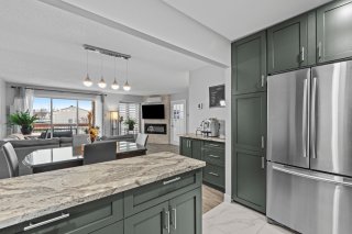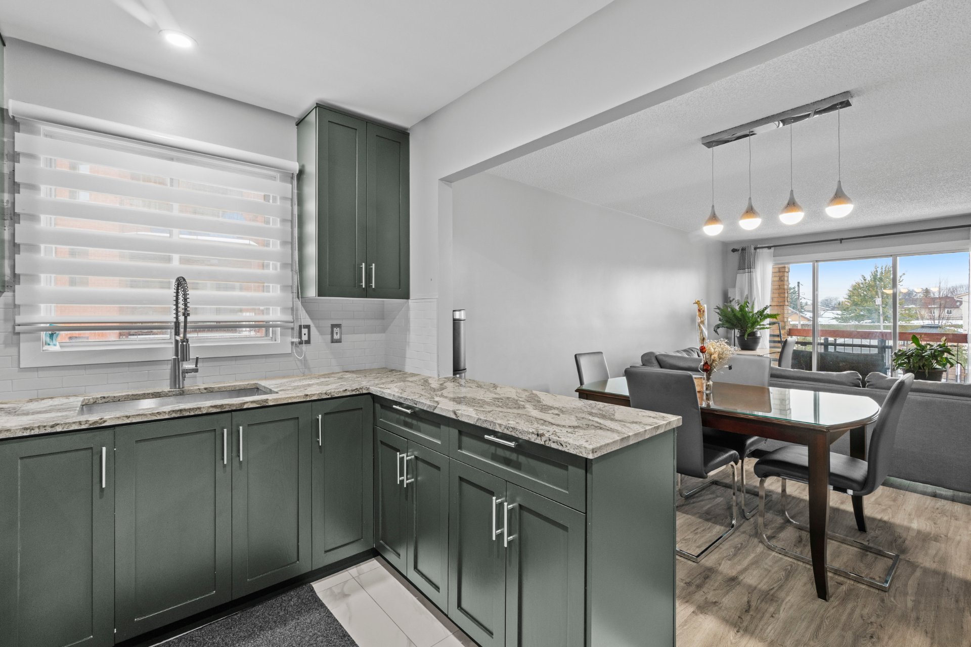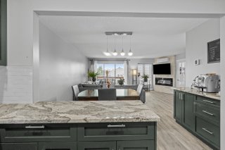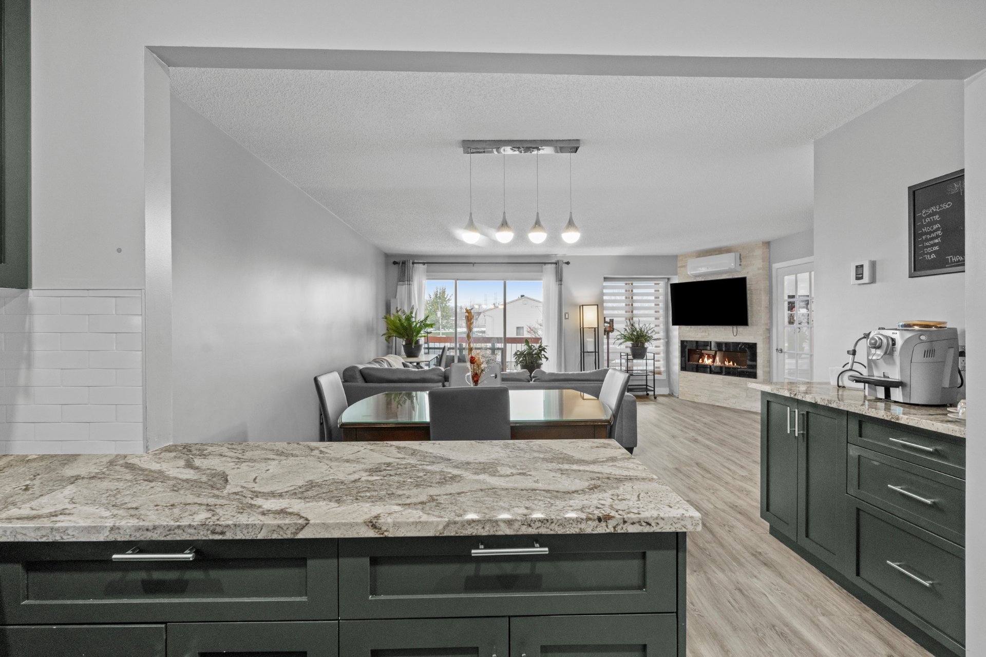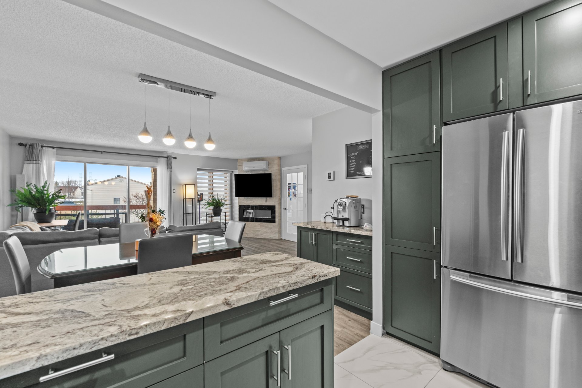 de briques, ainsi qu'une cuisine à aire ouverte dotée de