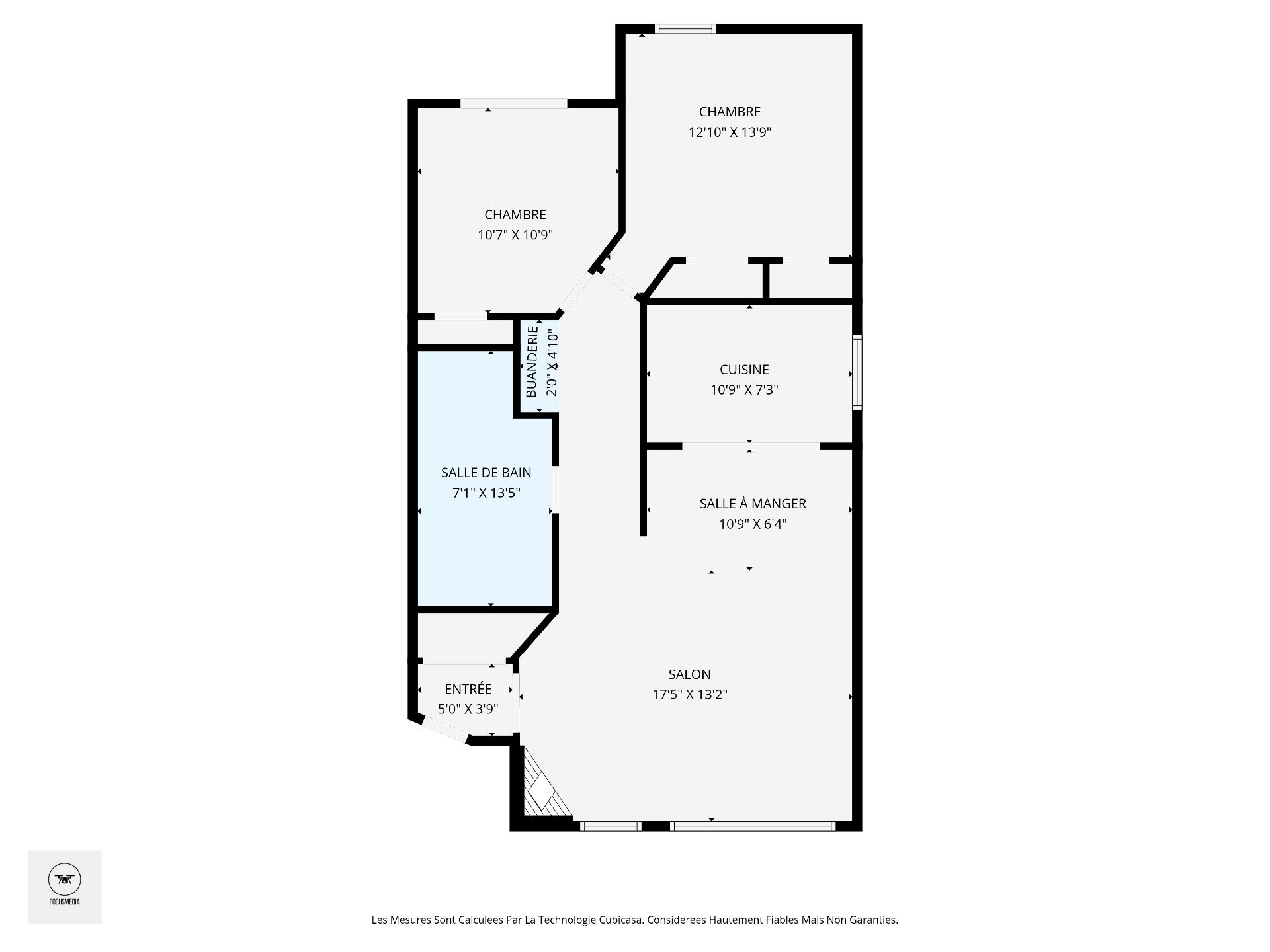 | Salle de bains | 13.5 x 7.1 P | 2ième étage | Céramique |
