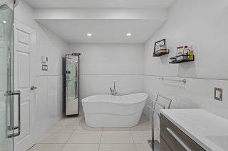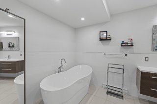 La salle de bain propose un style moderne avec bain