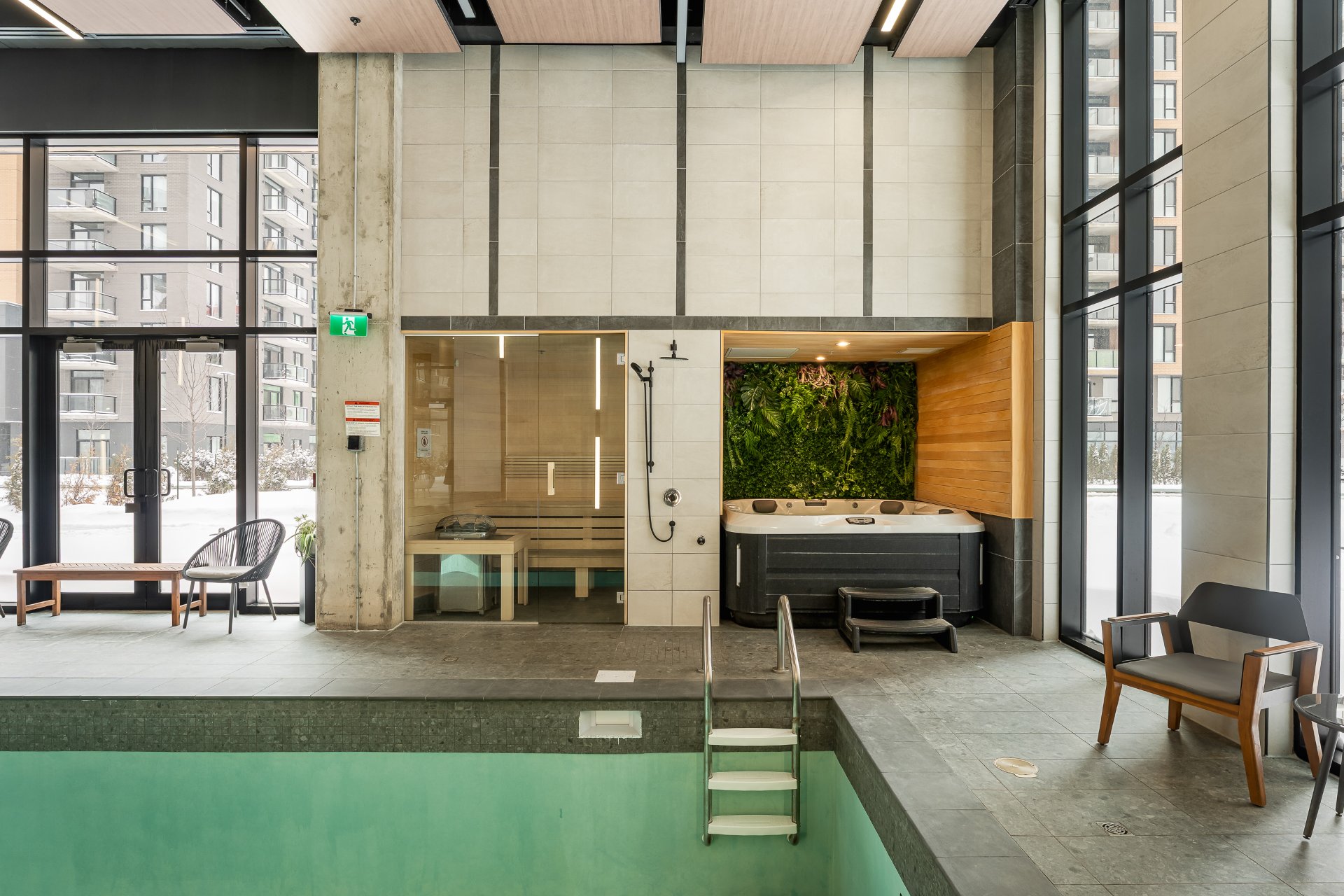 | Services disponibles | Balcon/Terrasse, Chute à déchets, Espace de rangement intérieur, Espace de stationnement pour visiteur, Piscine intérieure, Salle d'exercice, Sauna, Spa |