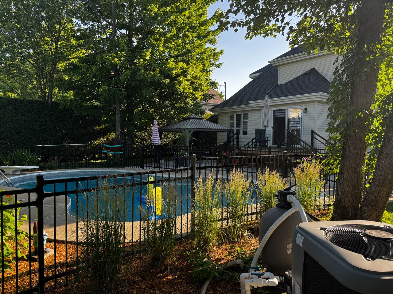 Inclus : Lave-vaisselle, frigo, cuisinière, thermopompe pour la piscine électrique, ouvre-porte garage électrique, revêtements de fenêtres, système d'alarme, système d'irrigation, gazebo