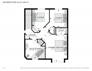 | Chambre à coucher principale | 12 x 15.1 P | 2ième étage | |