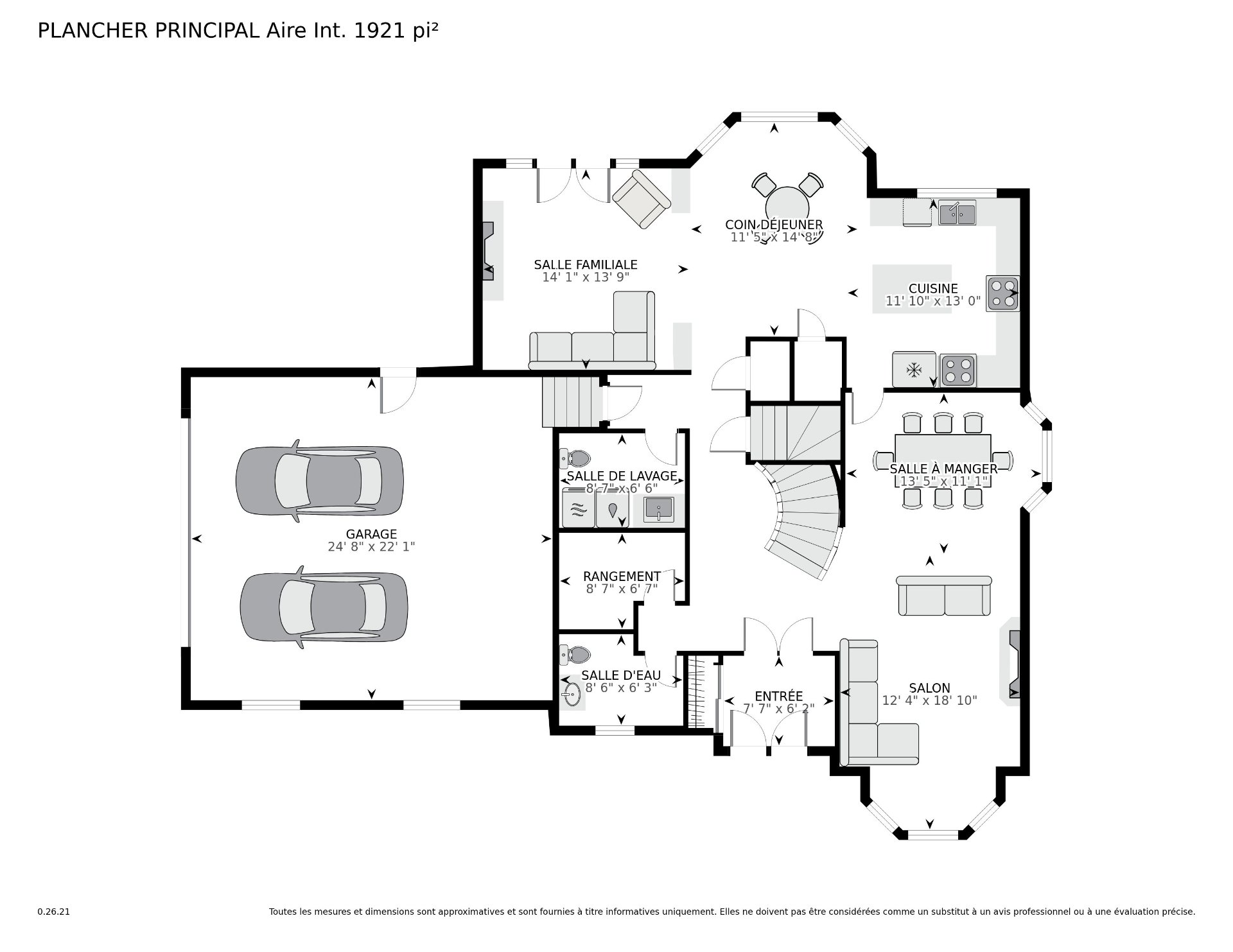 Salon | 16.0 x 12.6 P | Rez-de-chaussée | Bois |