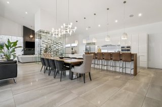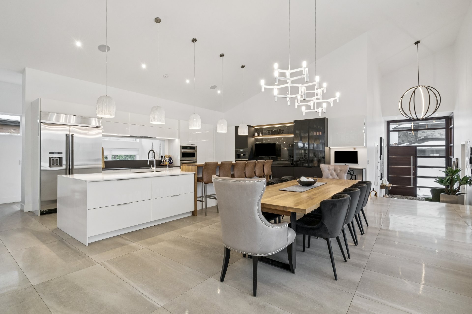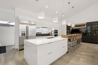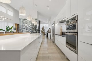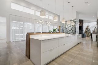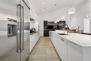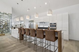 La cuisine adjacente est un rêve de chef, un immense îlot