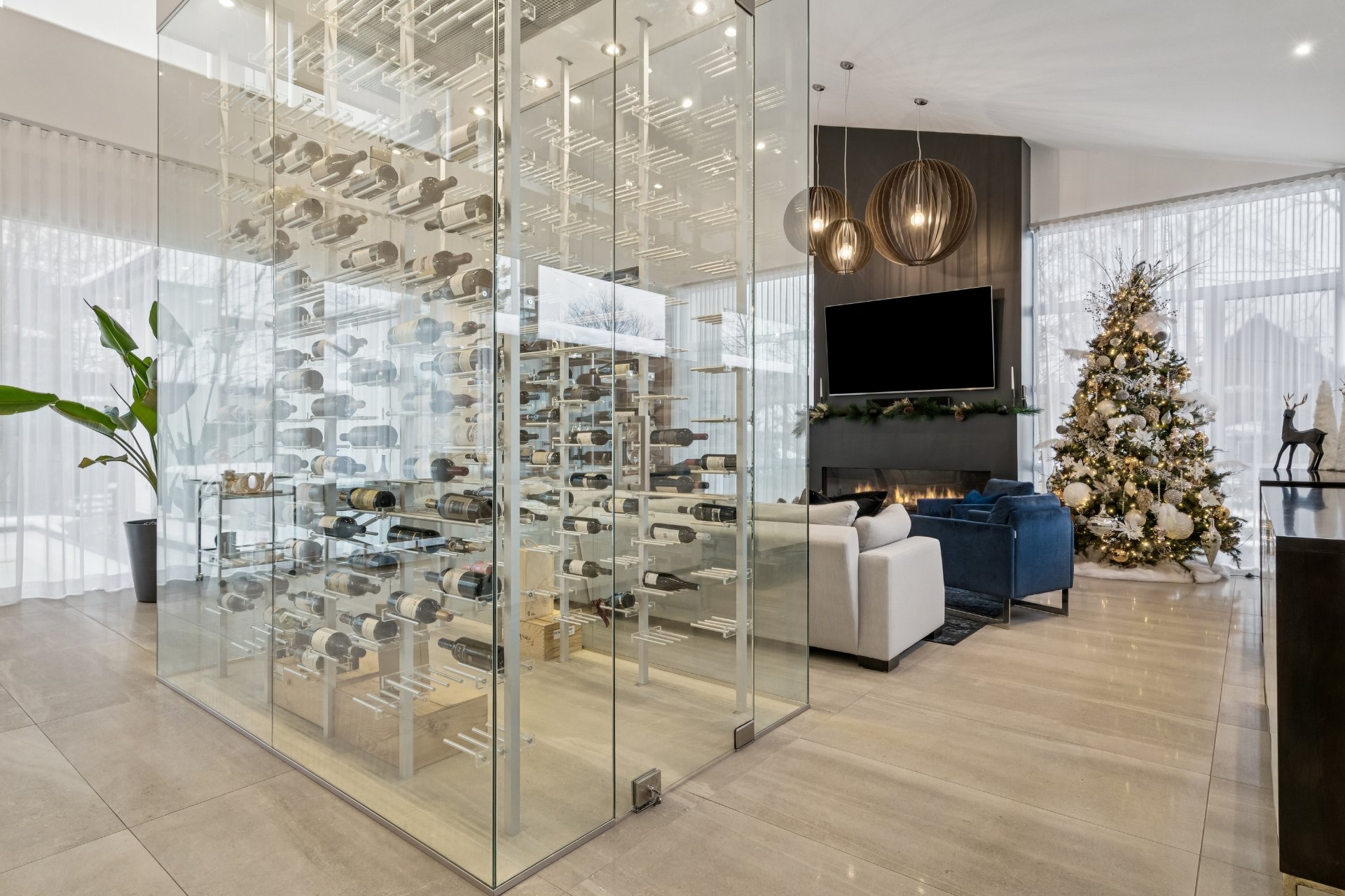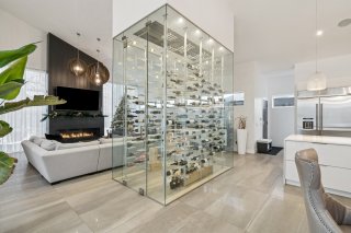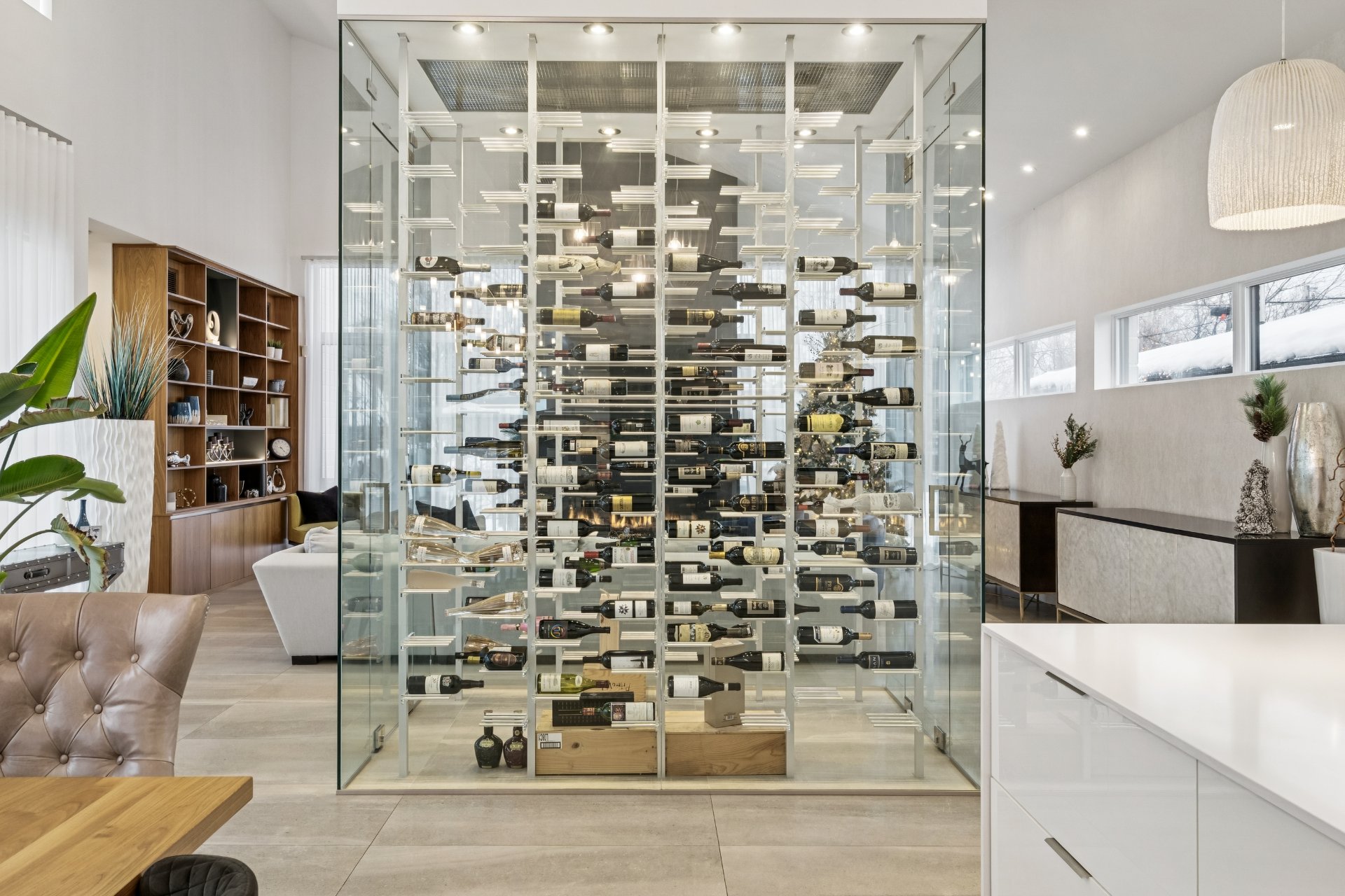 spectaculaire cellier vitré architectural. Véritable cube