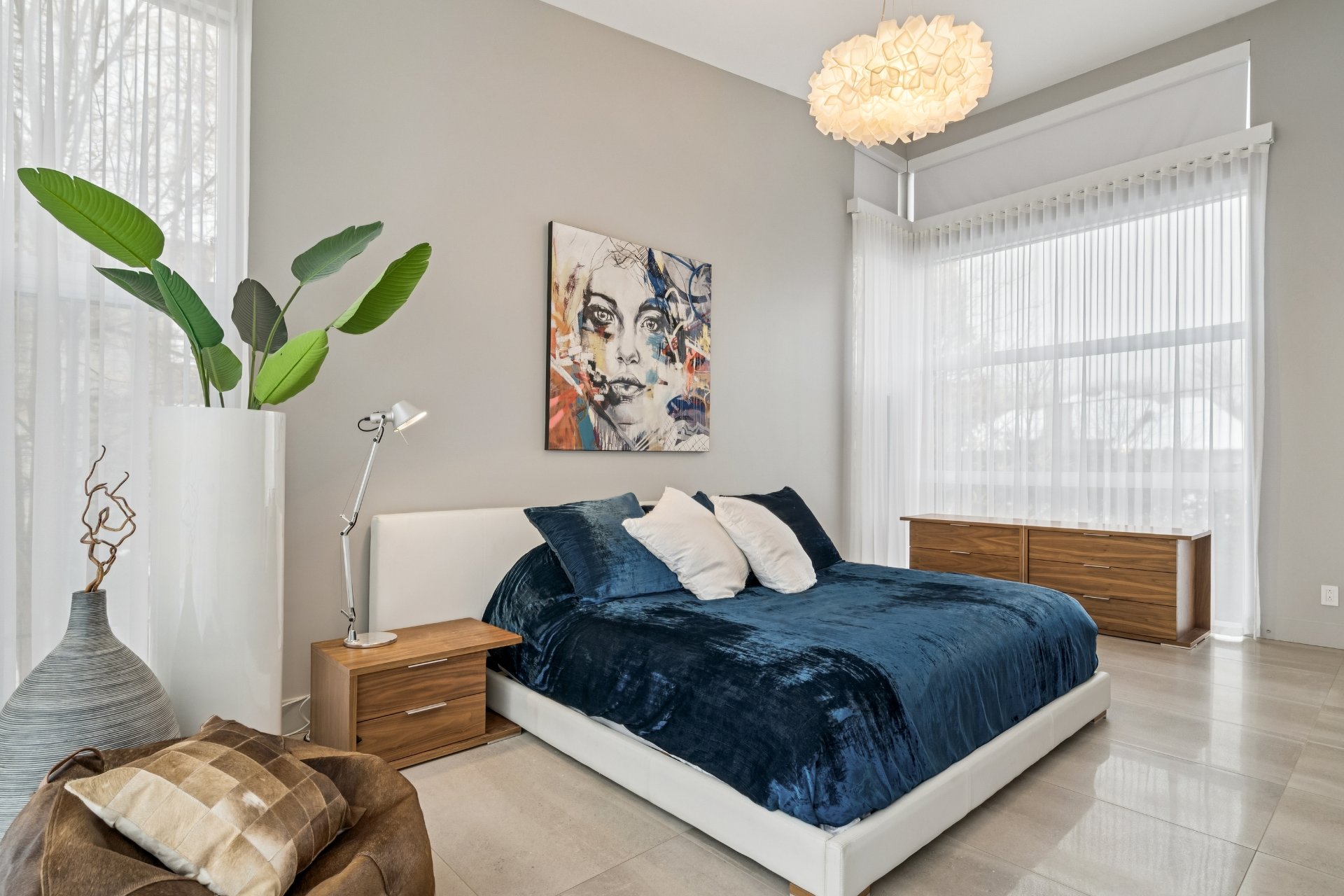 chambre, baignée de lumière naturelle grâce à d'immenses