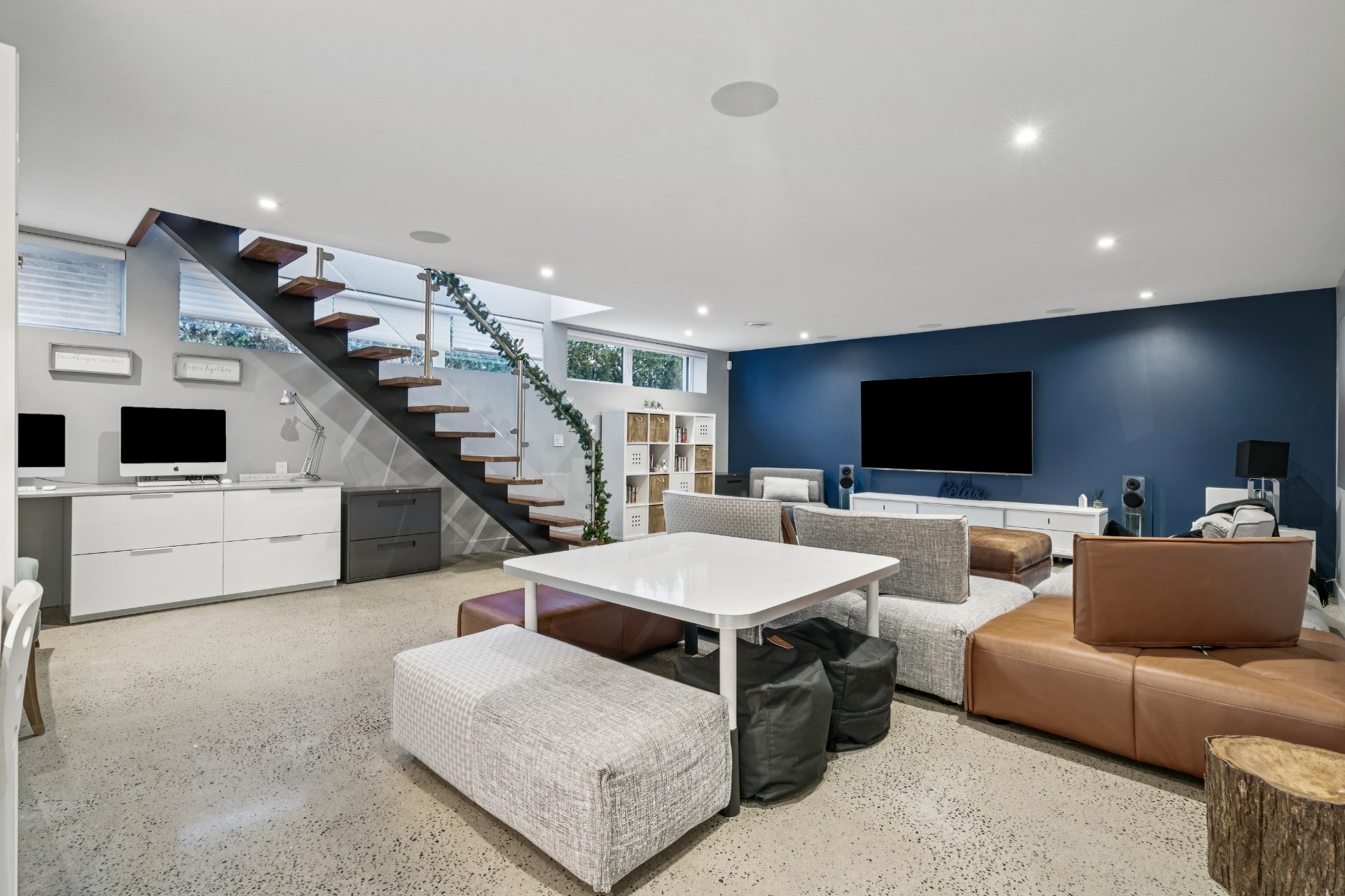 Le niveau inférieur, accessible par un escalier