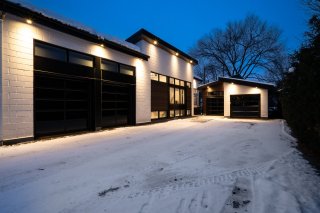 garages intégrés aux portes vitrées modernes. le comble du