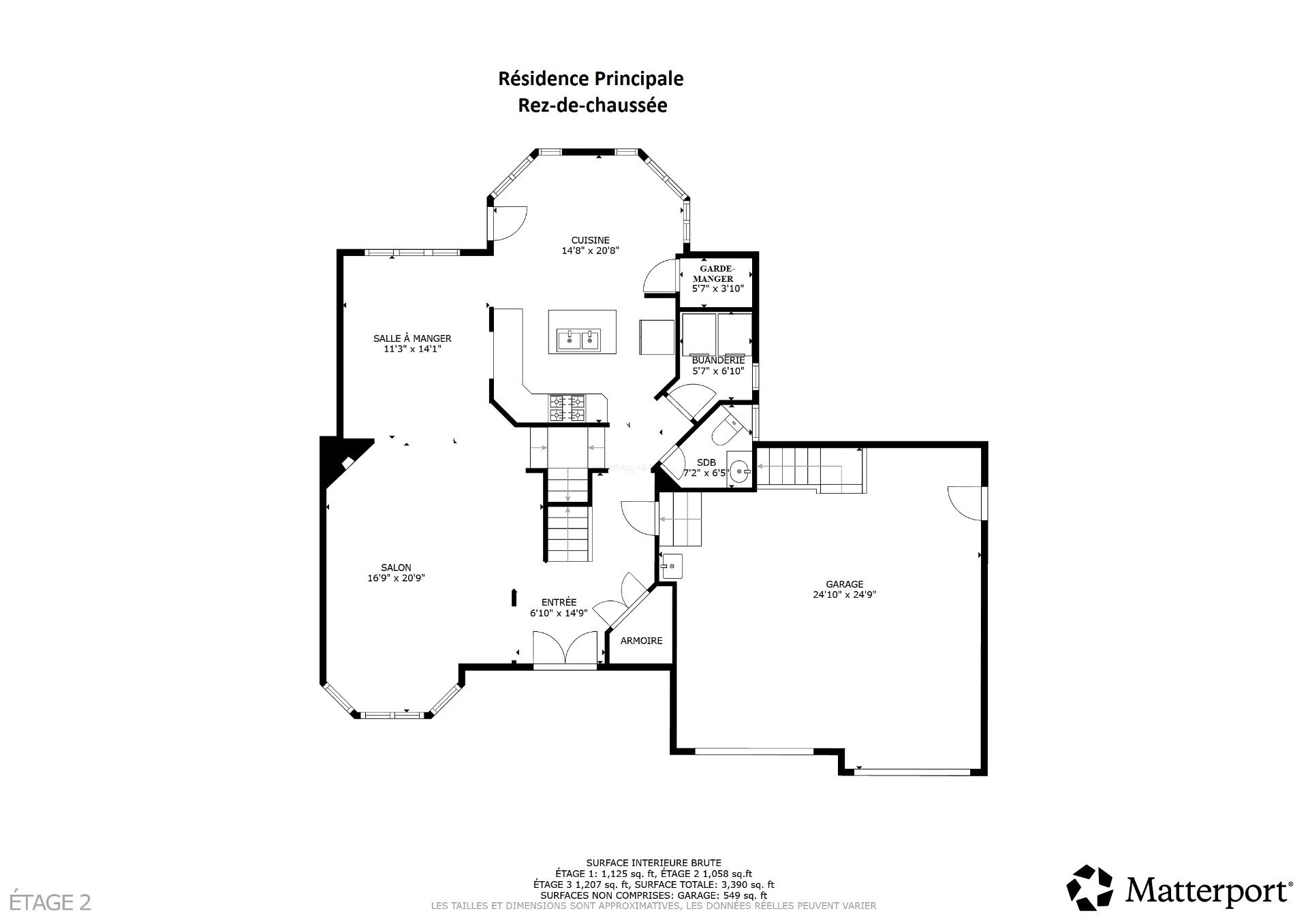 | Salon | 20.9 x 16.9 P | Rez-de-chaussée | Bois |