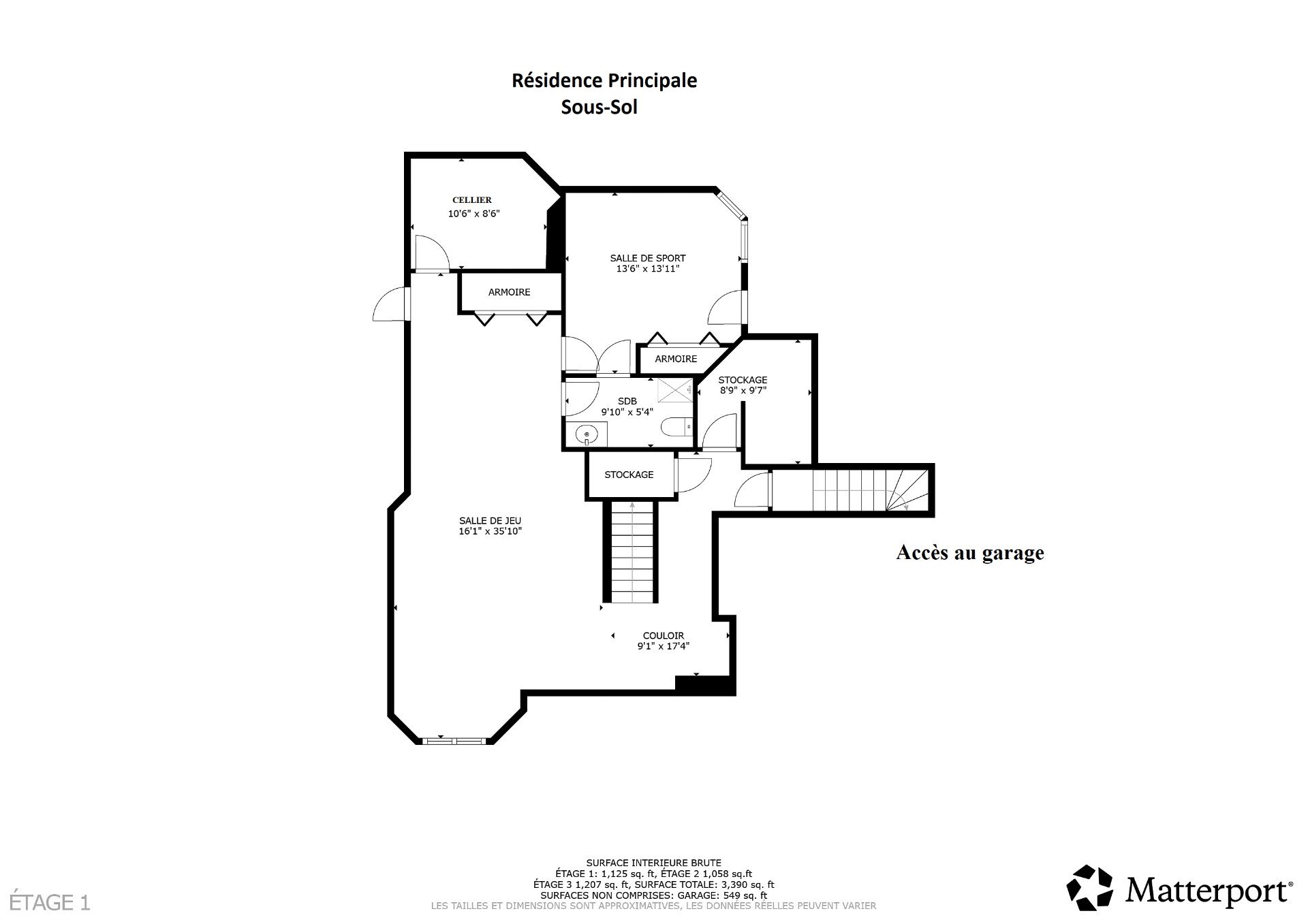 | Salle de bains | 9.10 x 5.4 P | Sous-sol | Céramique |