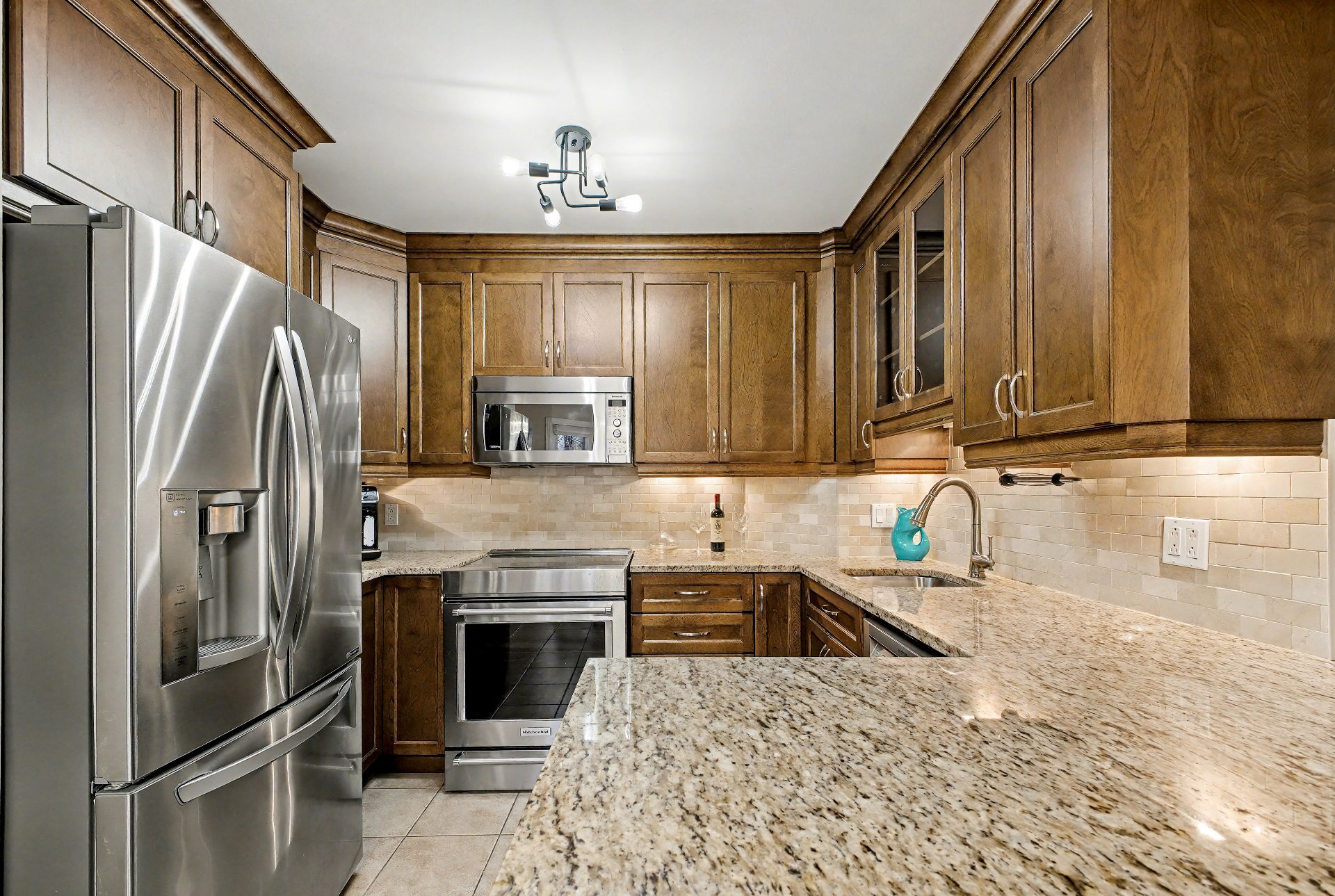 en bois d'érable est équipée de comptoirs de granit, d'une